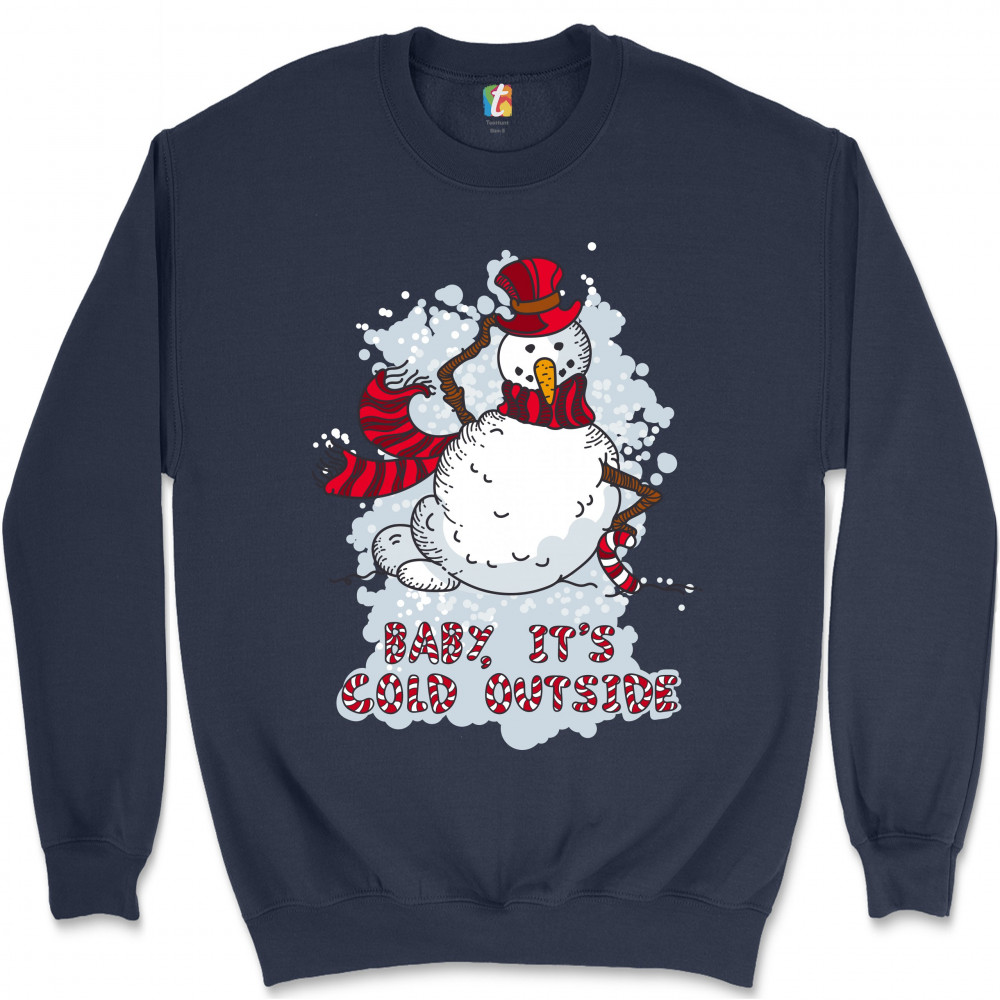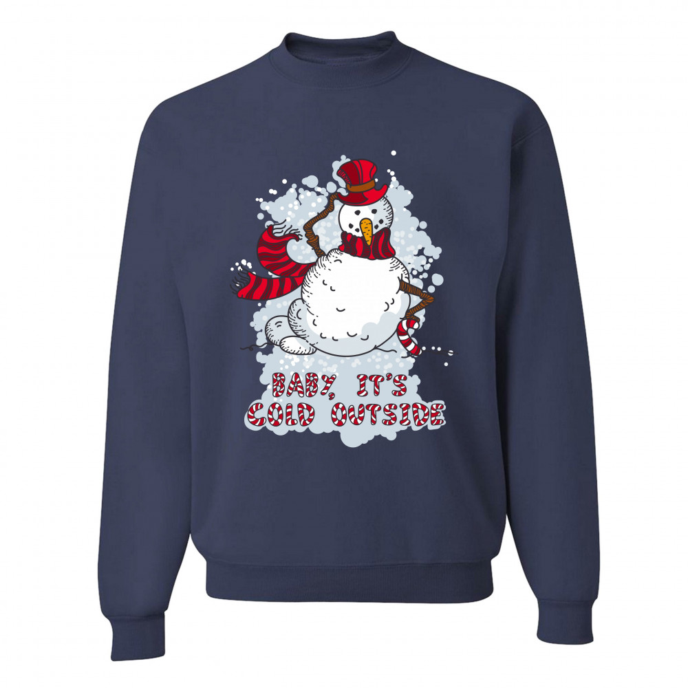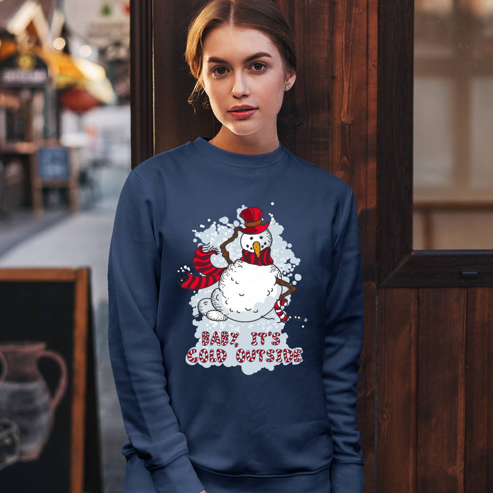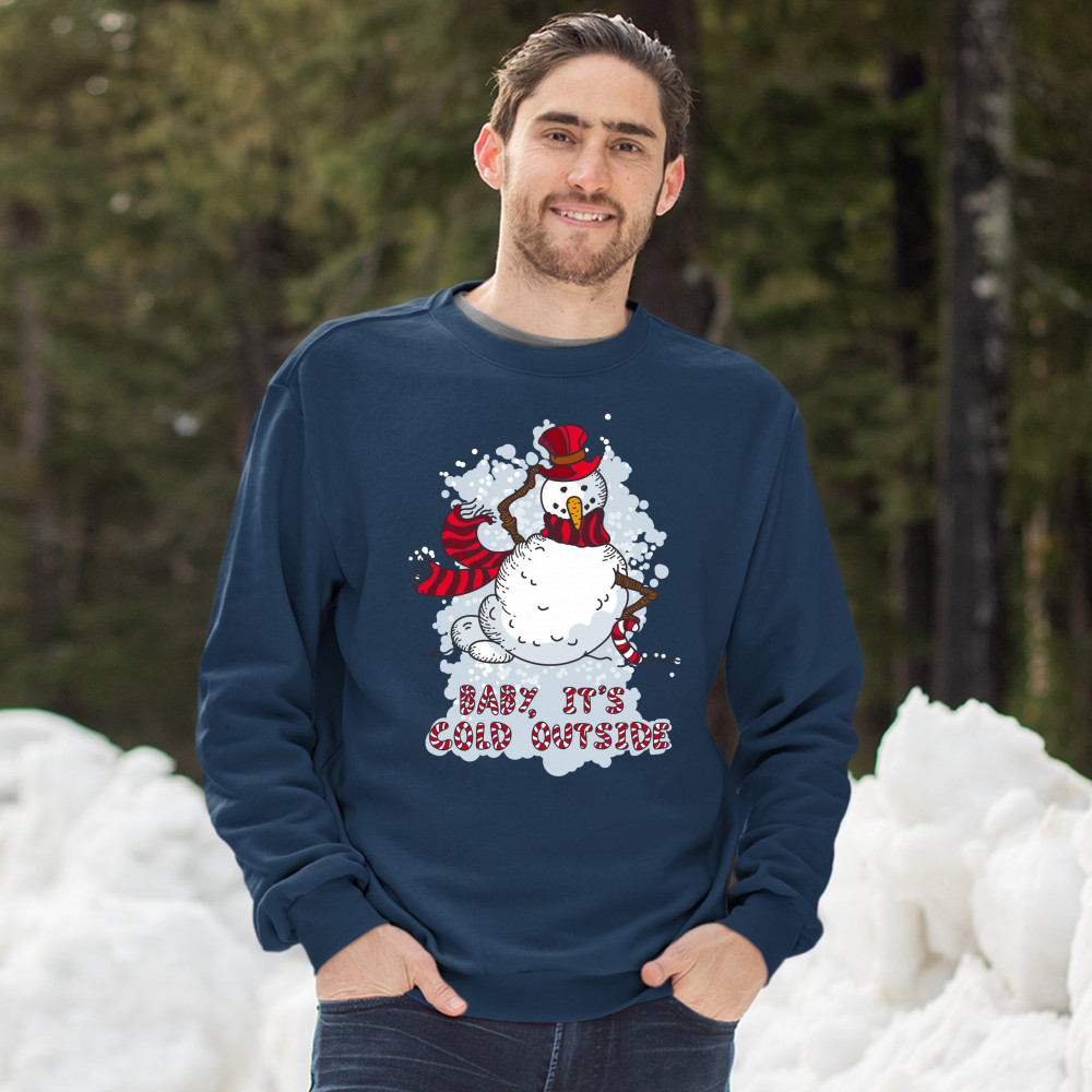 BABY, IT'S COLD OUTSIDE sweatshirt merry christmas snowman candy cane crewneck navy blue