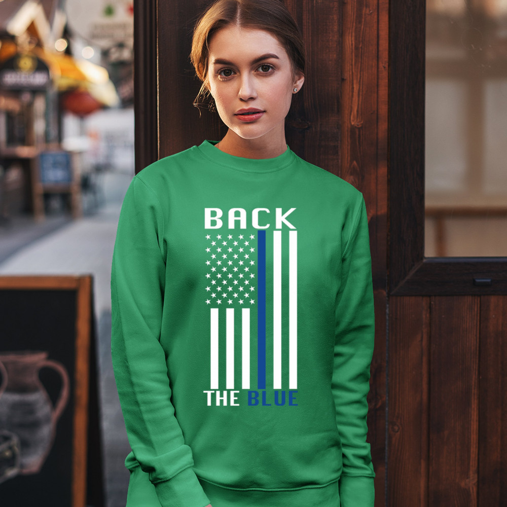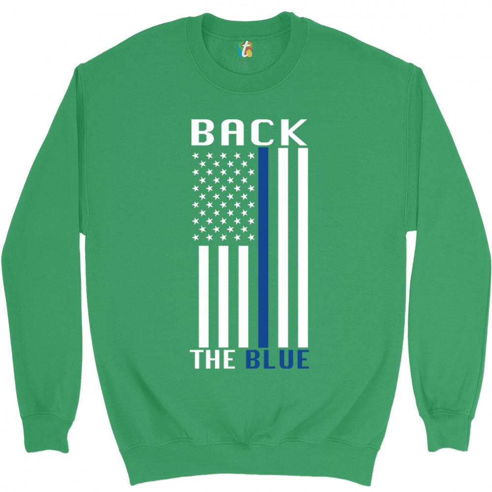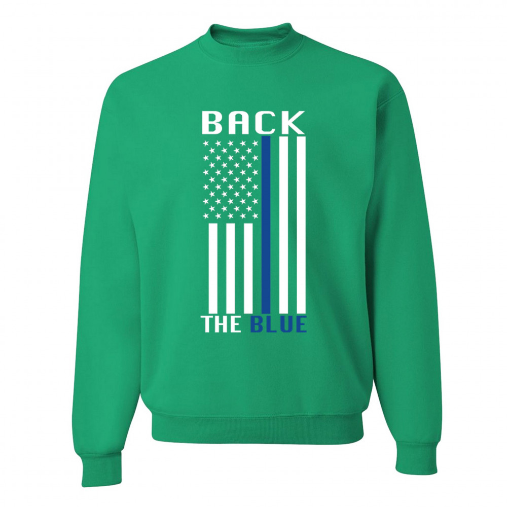 BACK THE BLUE AMERICAN FLAG sweatshirt police law enforcement crewneck green