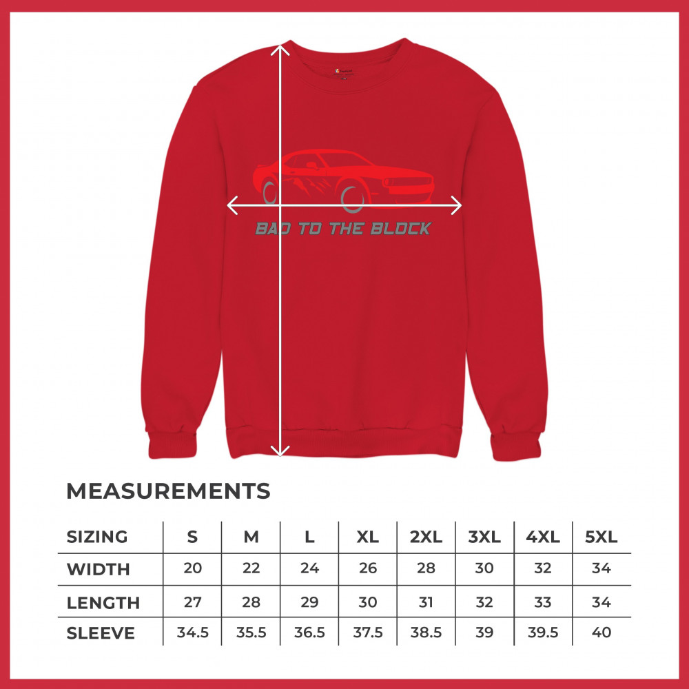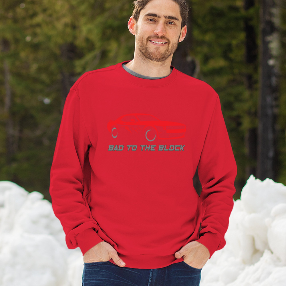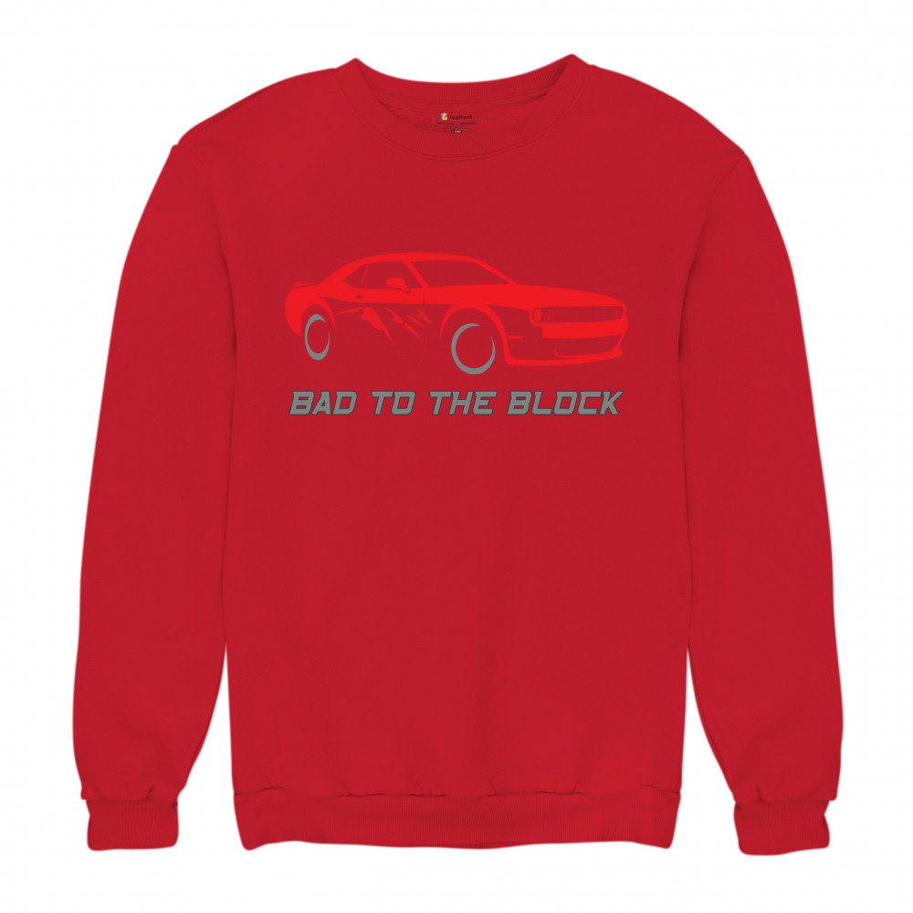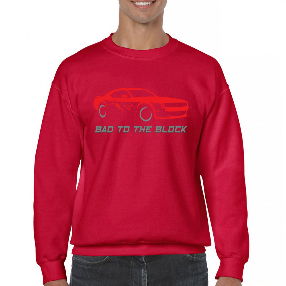 BAD TO THE BLOCK MUSCLE CAR sweatshirt street racer american v8 power crewneck red