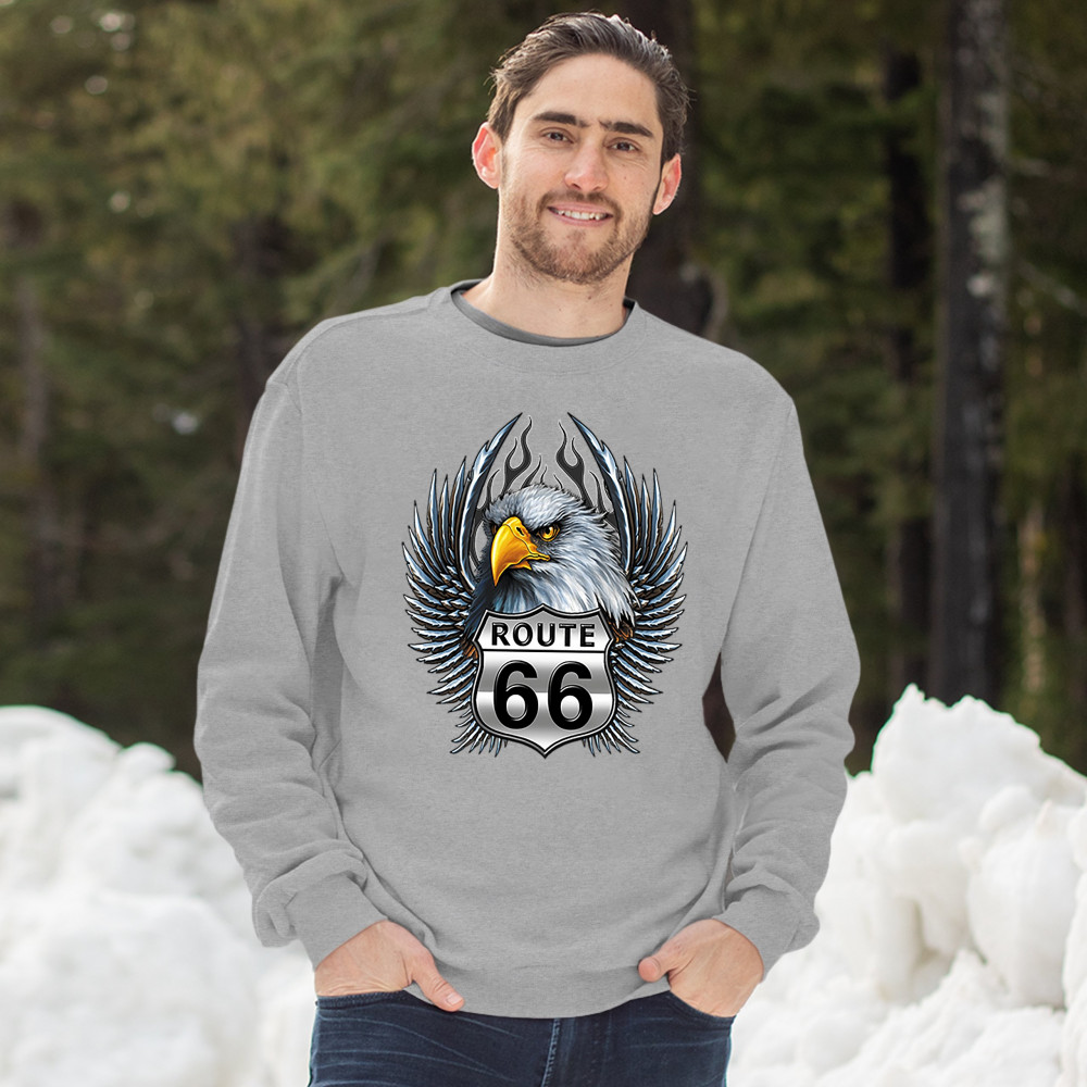 BALD EAGLE ROUTE 66 ROAD SIGN sweatshirt live to ride born to be wild crewneck gray