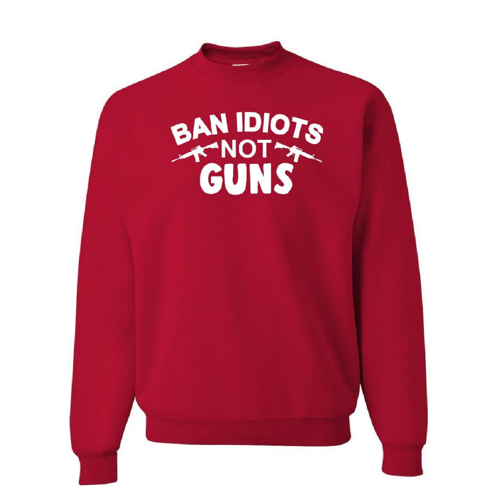 BAN IDIOTS NOT GUNS sweatshirt patriot 2nd amendment pro guns arms sweater red