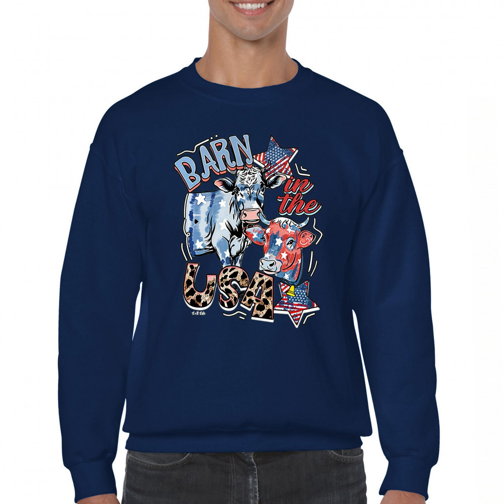 Celebrate American farming and patriotic spirit with our playful "Barn in the USA" design, a blend of whimsy and pride.