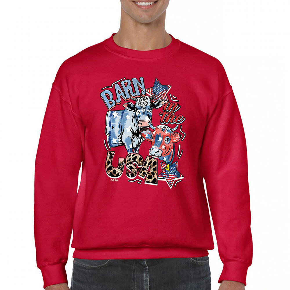 Celebrate American farming and patriotic spirit with our playful "Barn in the USA" design, a blend of whimsy and pride.