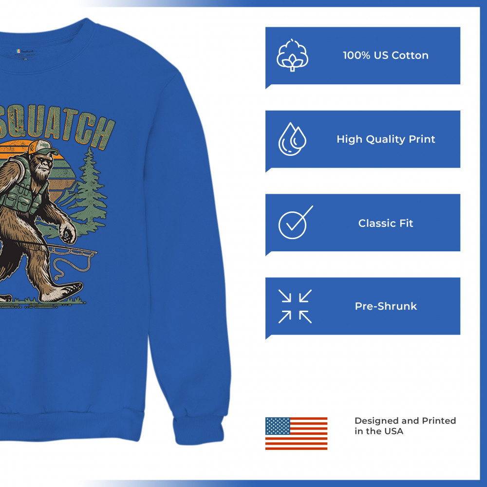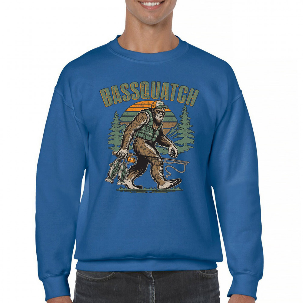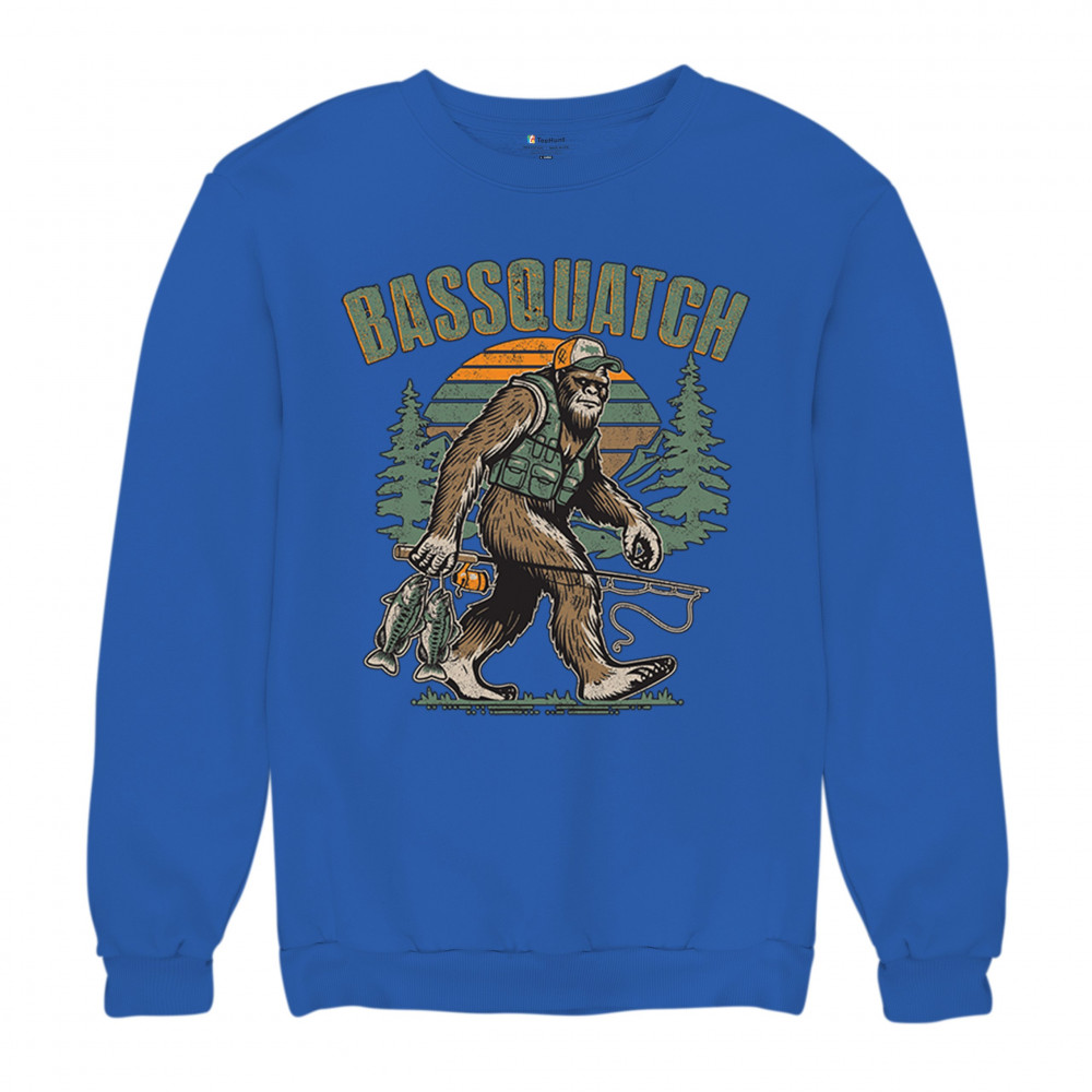BASSQUATCH BIGFOOT FISHING sweatshirt funny sasquatch camping 4th july crewneck royal blue