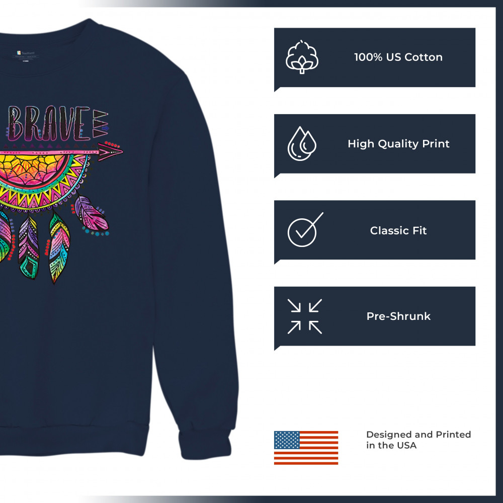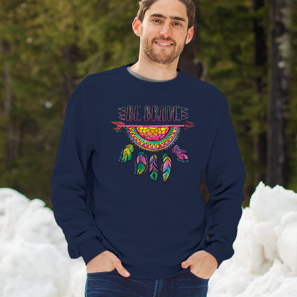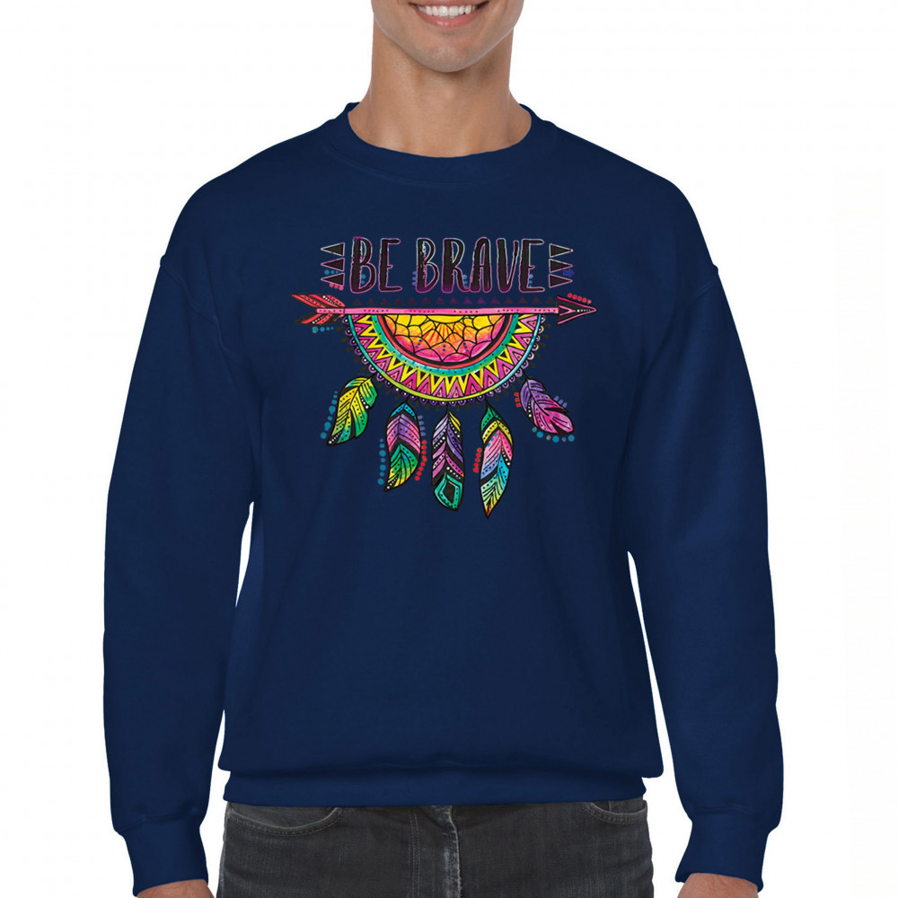 BE BRAVE DREAM CATCHER sweatshirt dean russo motivation feather crewneck navy blue