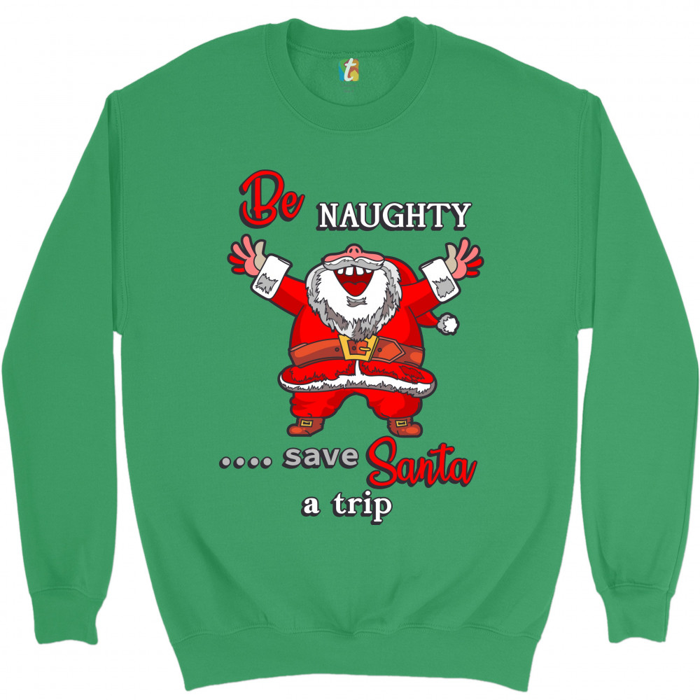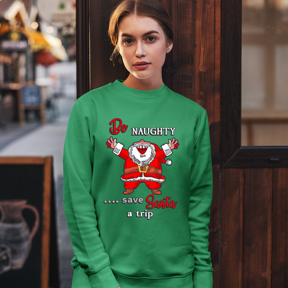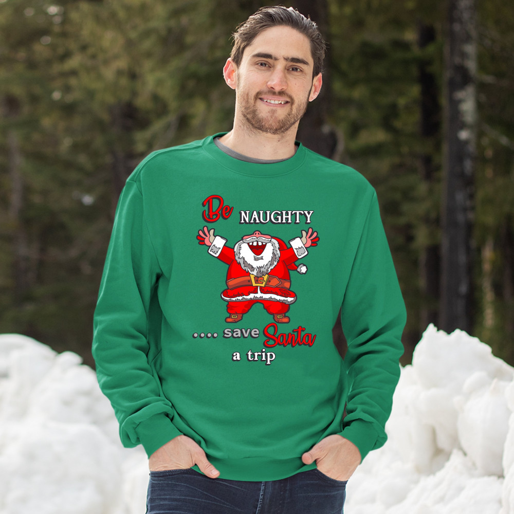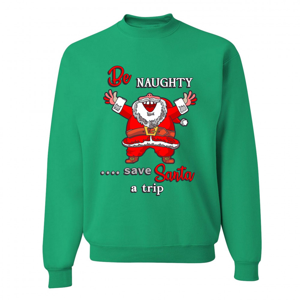 BE NAUGHTY SAVE SANTA A TRIP sweatshirt holiday spirit christmas eve crewneck green