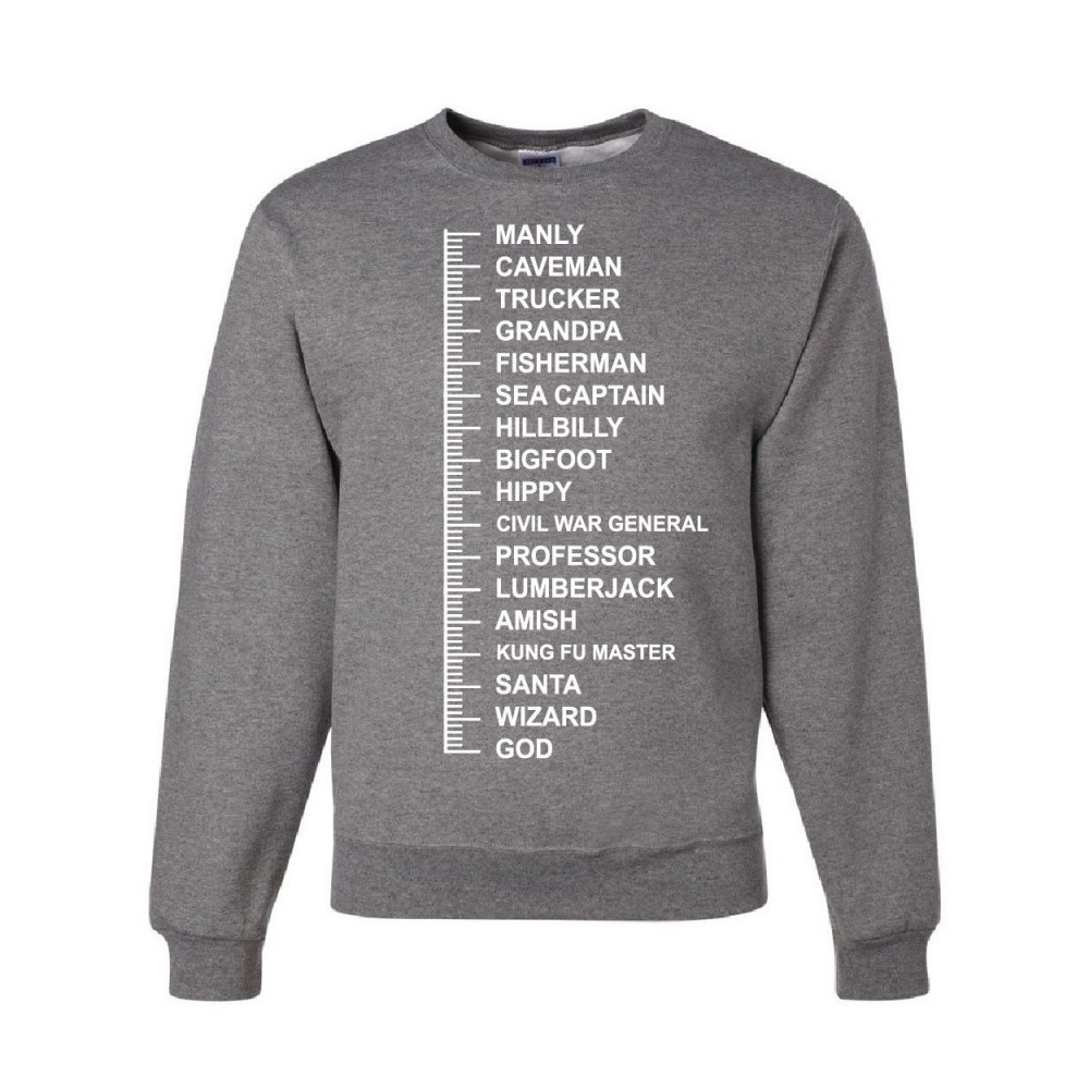 BEARD LENGTH MEASURING sweatshirt funny beard ruler gray