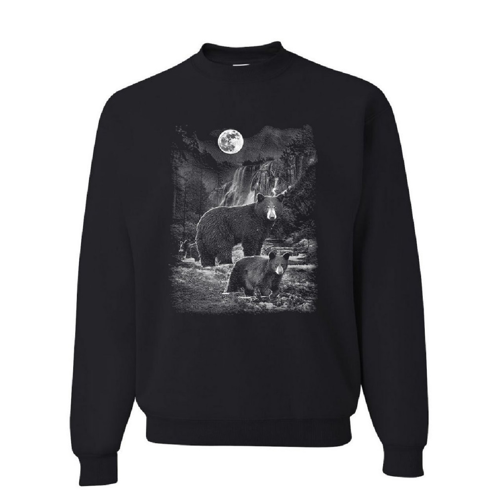 BEARS IN THE NIGHT sweatshirt brown bear grizzly wilderness animals sweater black