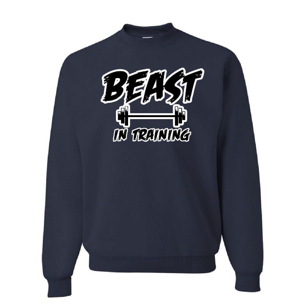 BEAST IN TRAINING crew neck sweatshirt funny gym workout fitness navy blue