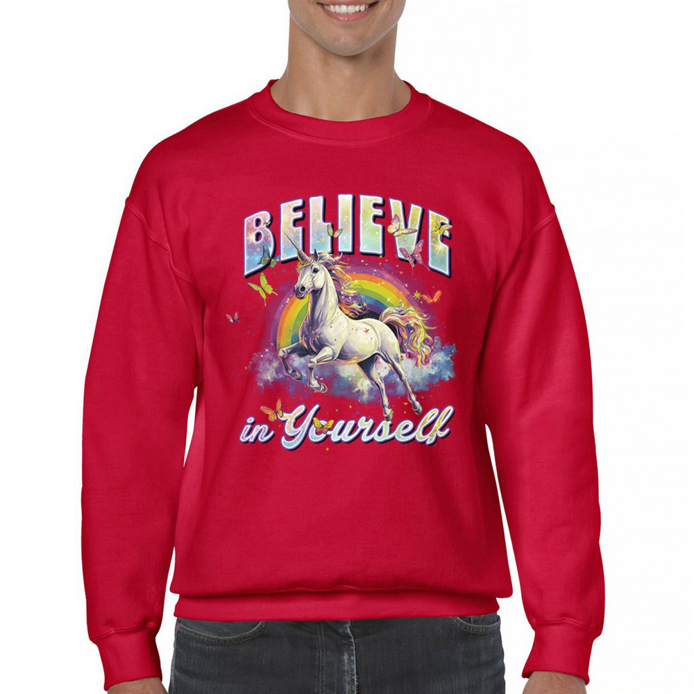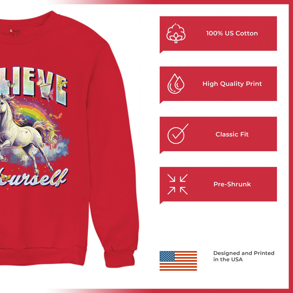 Bring fairytale magic into your everyday life with this Believe in Yourself unicorn rainbow design. Featuring whimsical unicorn shirt details, fantasy rainbow shirt colors, and enchanted unicorn shirt sparkle, it inspires positivity and confidence. A magical rainbow unicorn and galaxy unicorn shirt full of charm, sparkle unicorn shirt vibes, and uplifting energy for all dreamers.