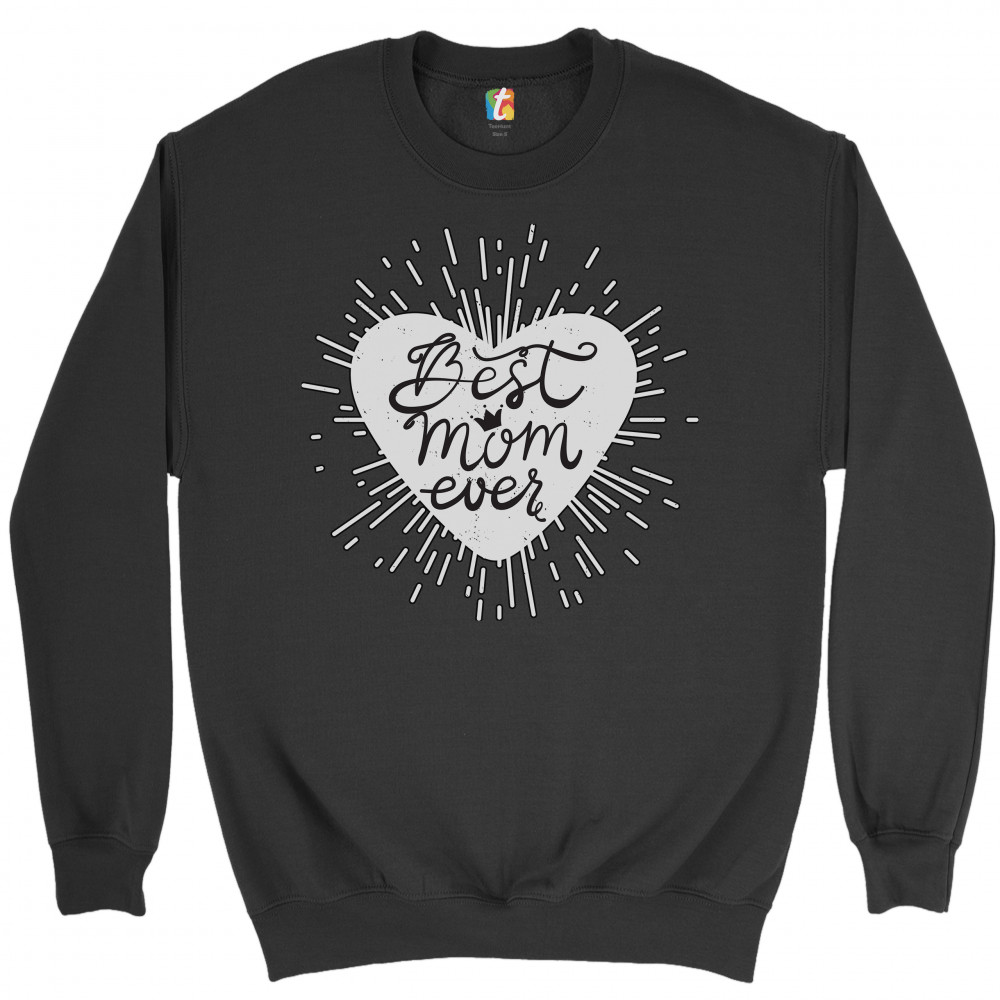 A beautiful print featuring a shining heart, inside of which there are words: "Best mom ever". There is a little crown above the letter "o". A great choice as a gift on Mother's Day for a loving caring mom.