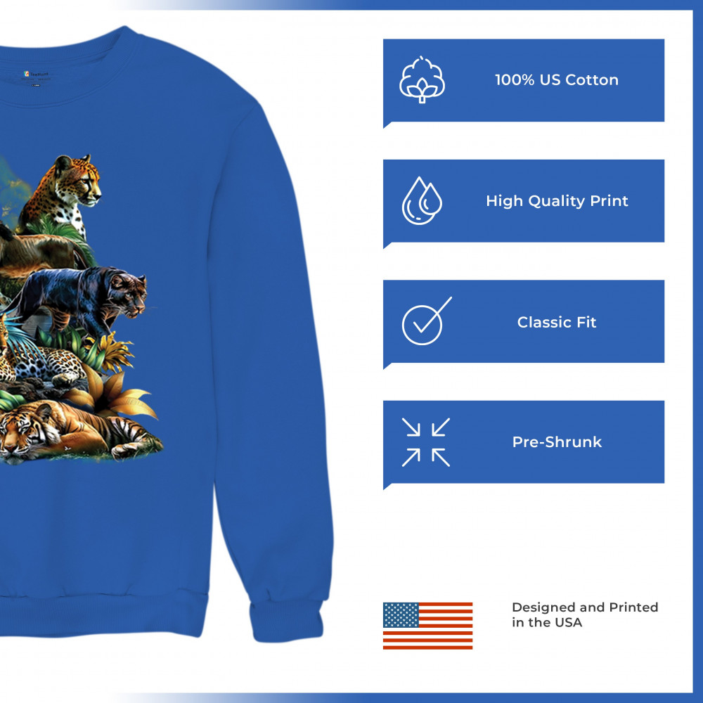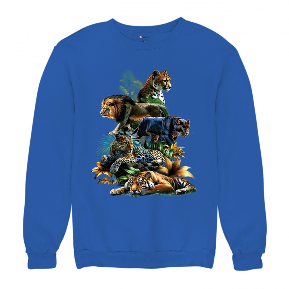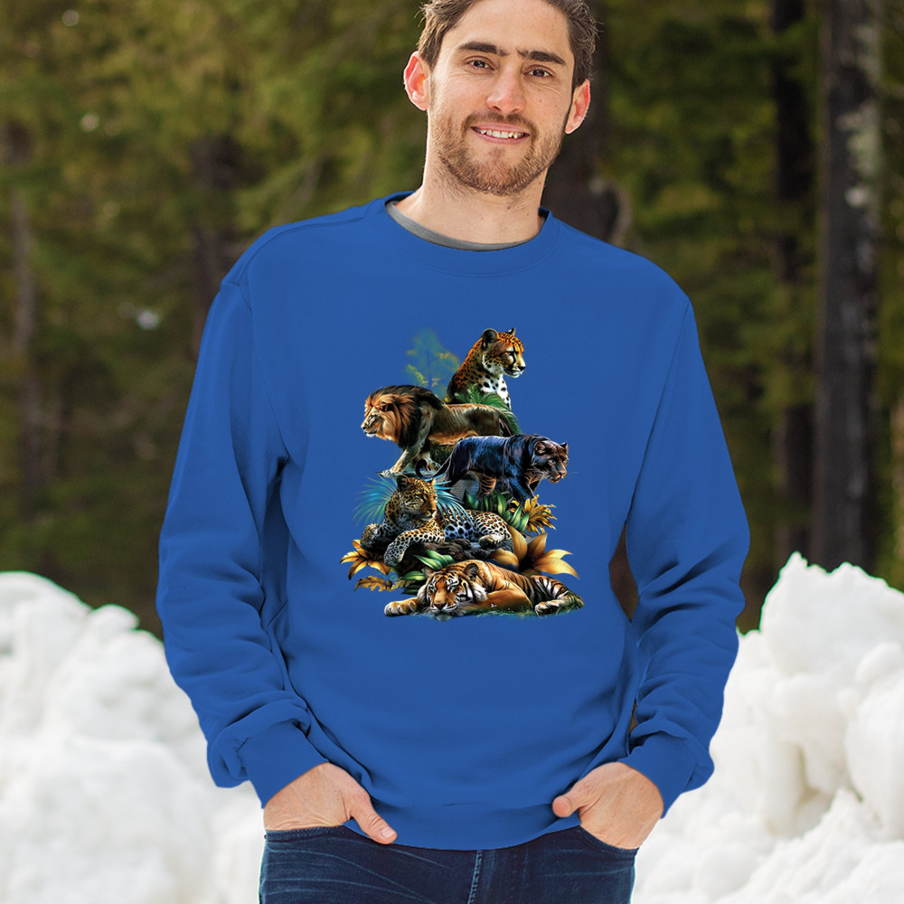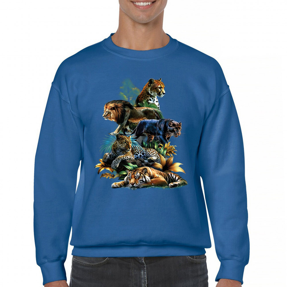 Bold big cat design with lion, tiger, leopard, cheetah, jaguar, and panther. A vivid tribute to wild nature, pride, and animal power.