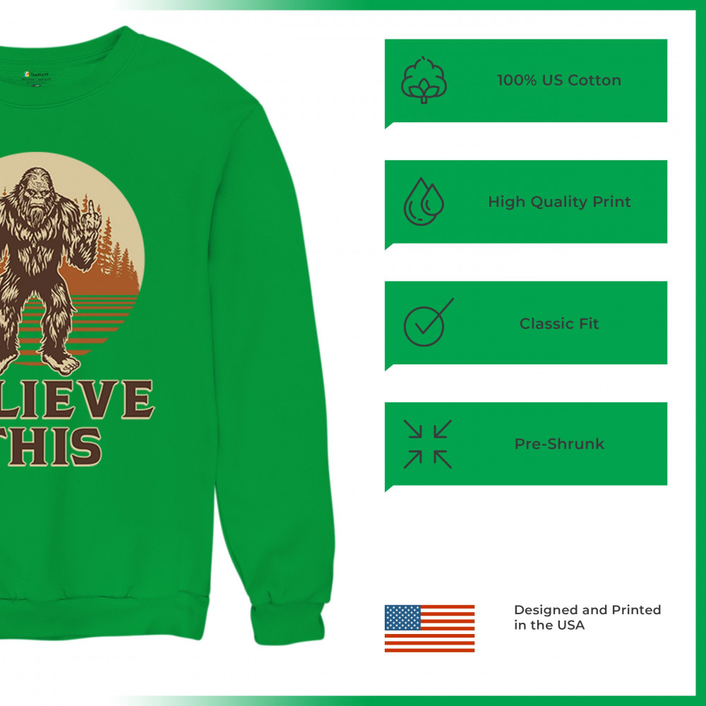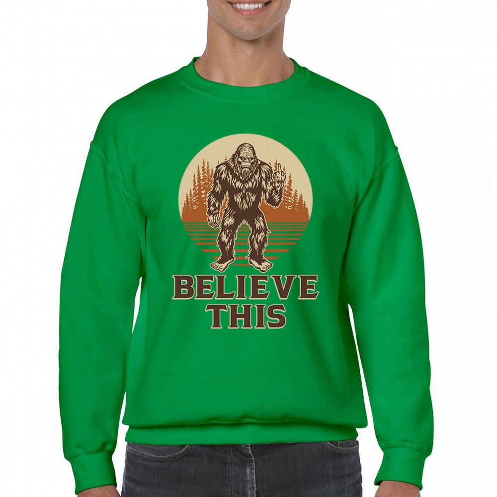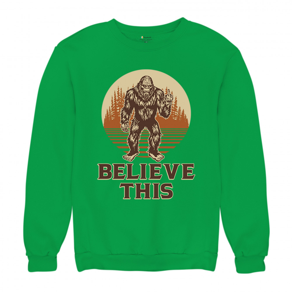 BIGFOOT BELIEVE THIS sweatshirt funny sasquatch middle finger humor crewneck green