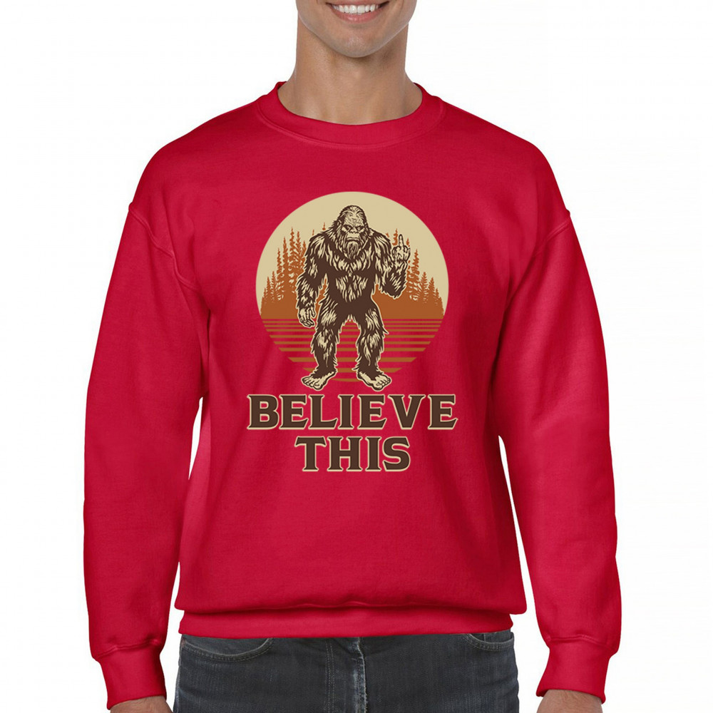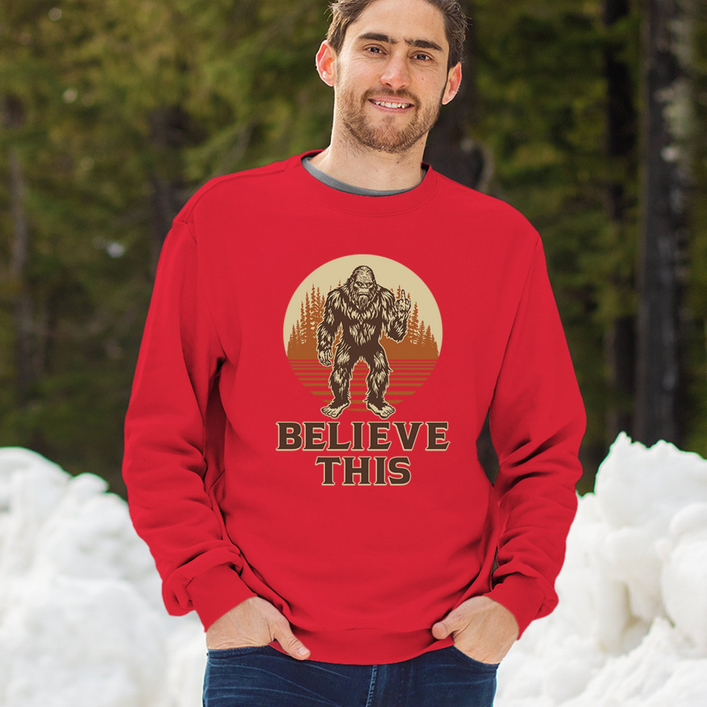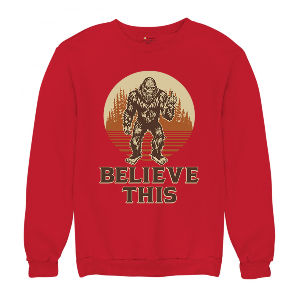 The Believe This Bigfoot design blends cryptid folklore with blunt attitude—because sometimes you just don’t care who believes. Featuring Bigfoot flipping the bird against a rustic tree line, it’s perfect for campers, rebels, and fans of sarcastic forest humor. Ideal for hikes, festivals, and off-grid living.