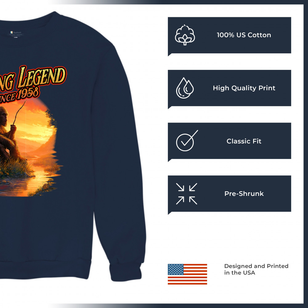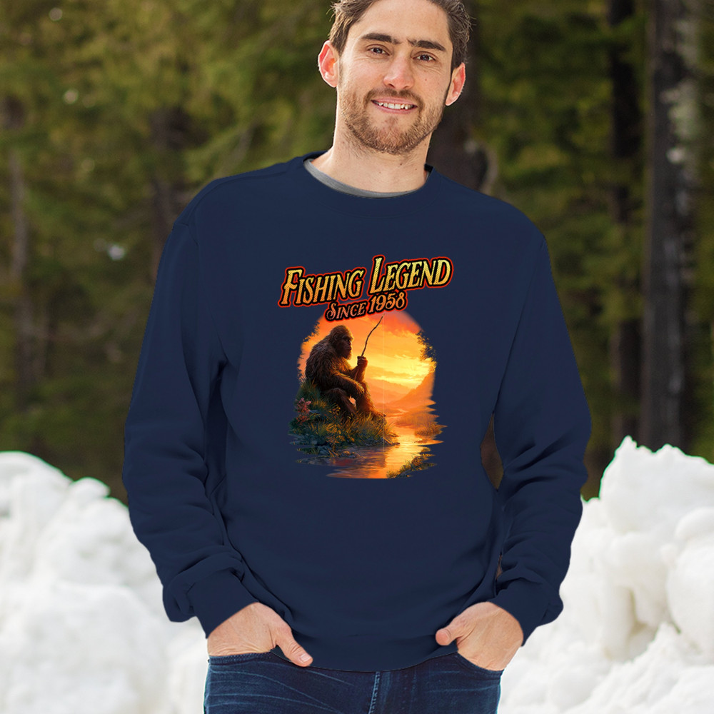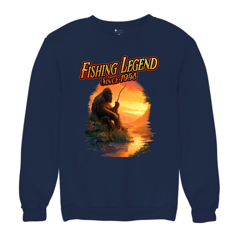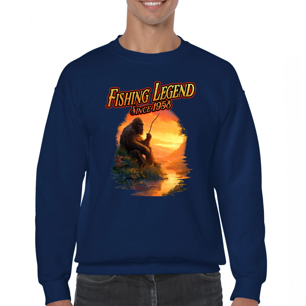 BIGFOOT FISHING LEGEND crewneck sweatshirt sasquatch hide and seek champion navy blue