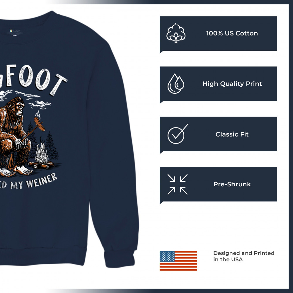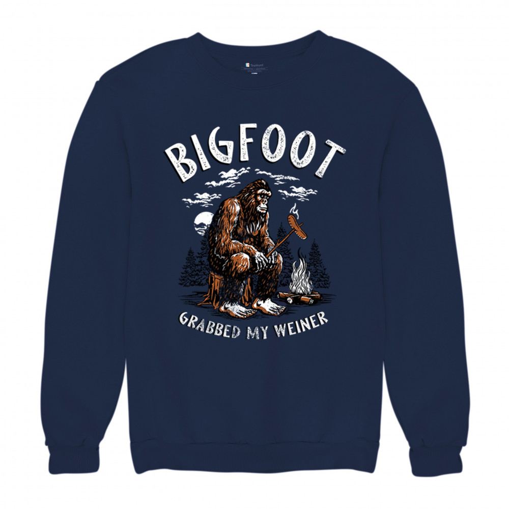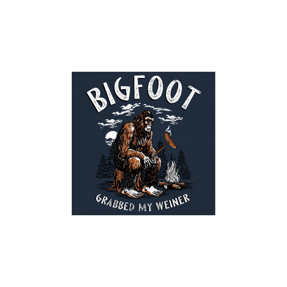 The Bigfoot Grabbed My Weiner design brings cheeky campfire humor to your outdoor adventures. Featuring a cartoon-style Sasquatch roasting a sausage by the fire, it’s perfect for cryptid lovers, campers, and jokesters. Ideal for BBQs, bonfires, forest festivals, and anyone who enjoys weiner jokes with their wilderness.