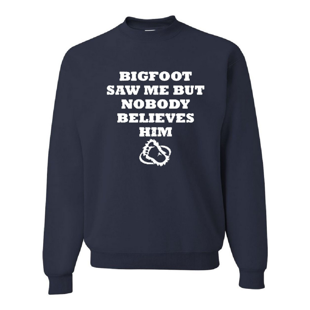 BIGFOOT SAW ME BUT NOBODY BELIEVES HIM crew neck sweatshirt funny navy blue