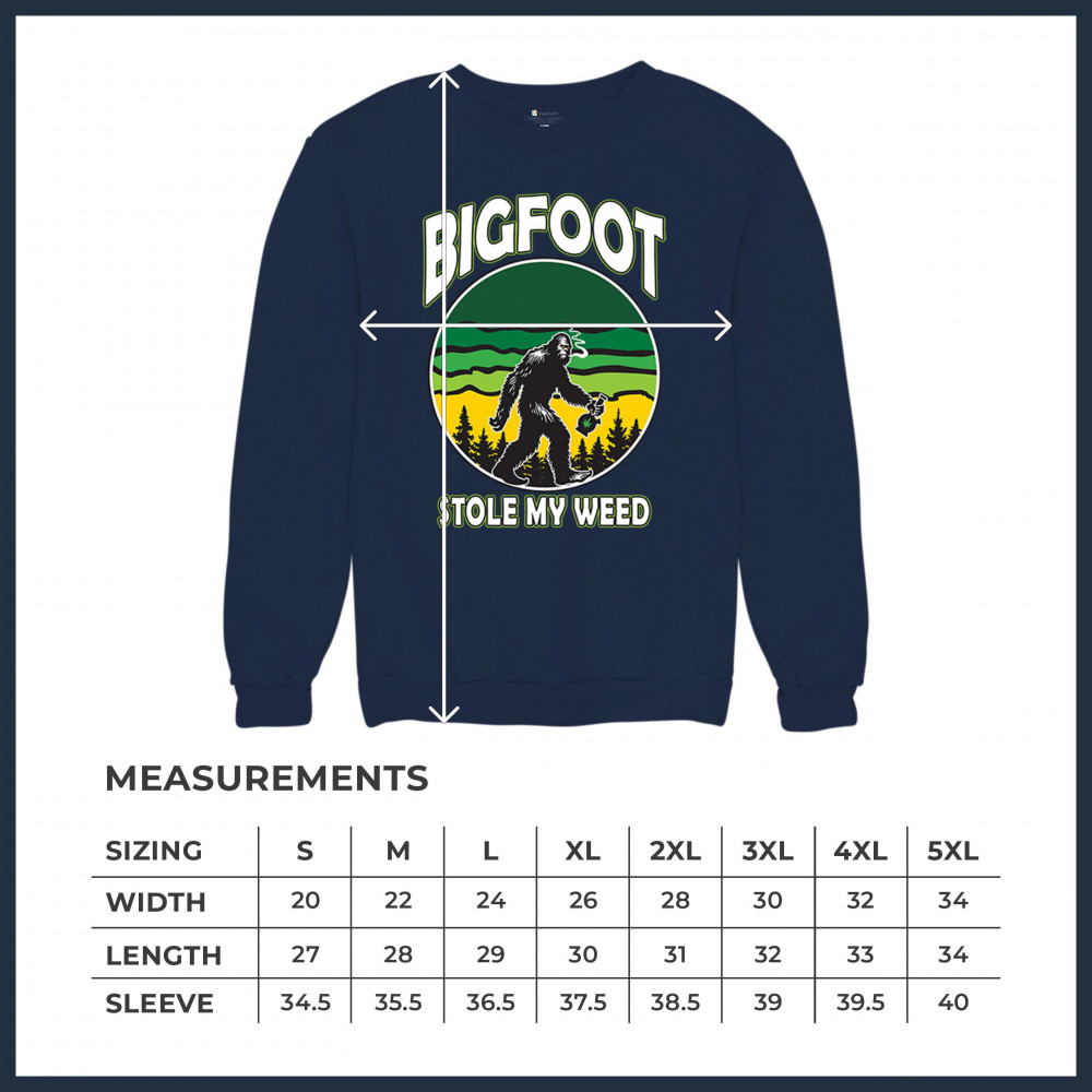 Experience the perfect blend of humor and cannabis culture with the "Bigfoot Stole My Weed" design. This playful design features a comical Bigfoot character holding a cannabis leaf, making it ideal for those who appreciate the humor and chill vibes of Mary Jane. Whether you're a pothead, enjoy stoned humor, or simply want to add some fun to your wardrobe, this design is sure to turn heads and bring smiles. Relax and embrace the trippy, laid-back lifestyle with this unique design.
