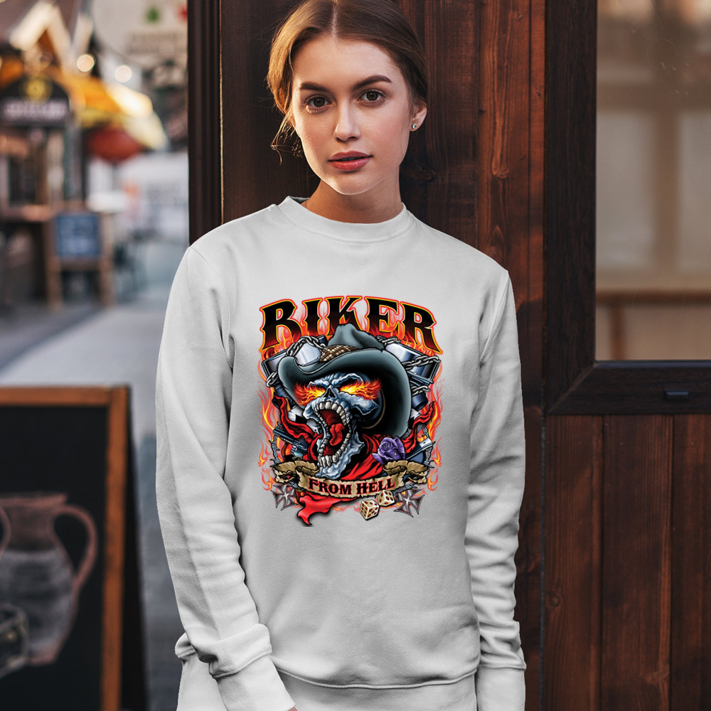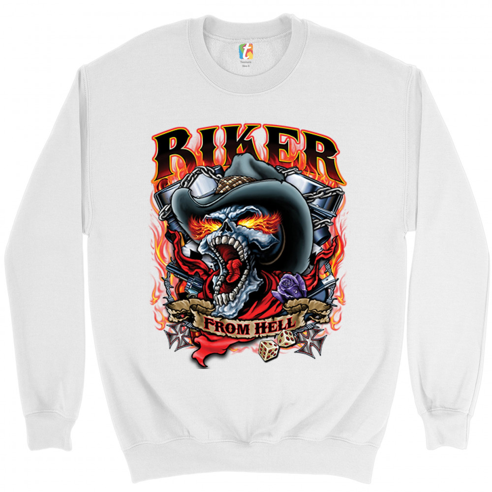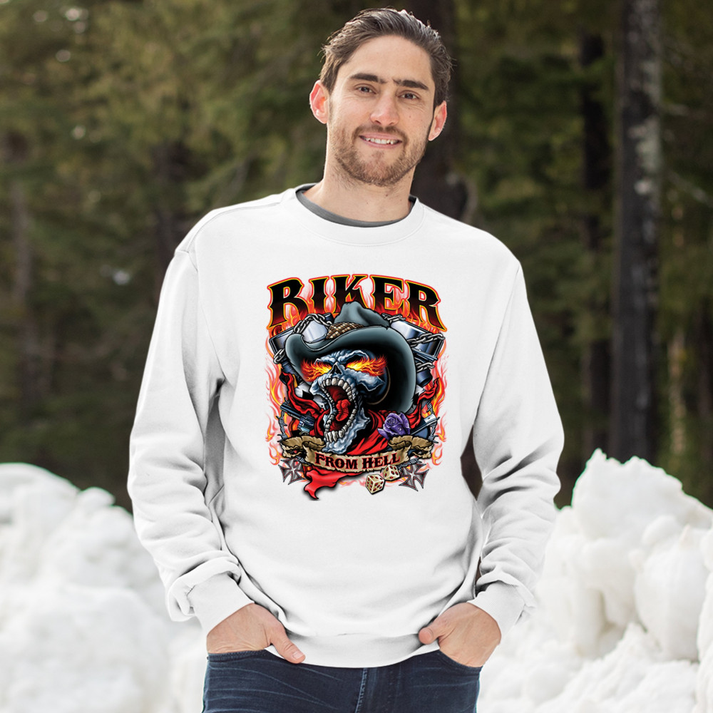 BIKER FROM HELL sweatshirt ride or die skeleton outlaw route 66 crewneck white