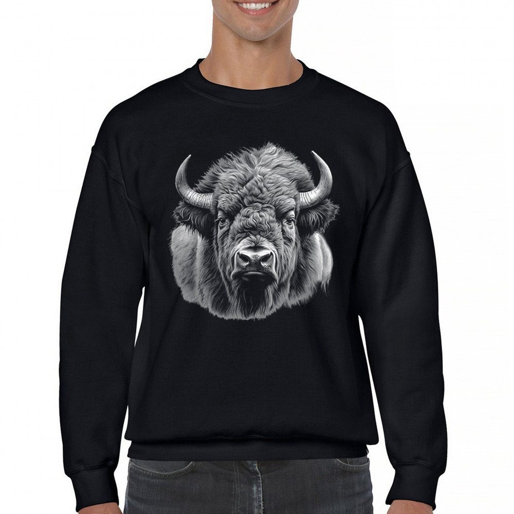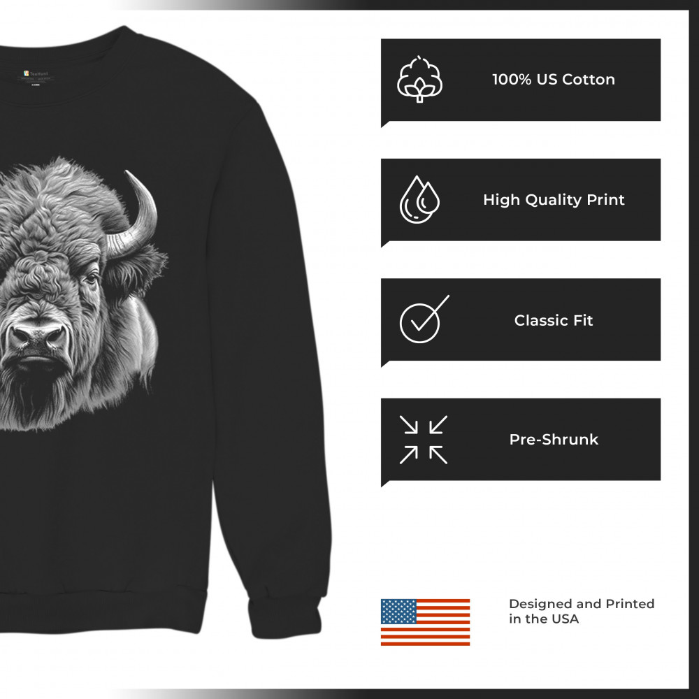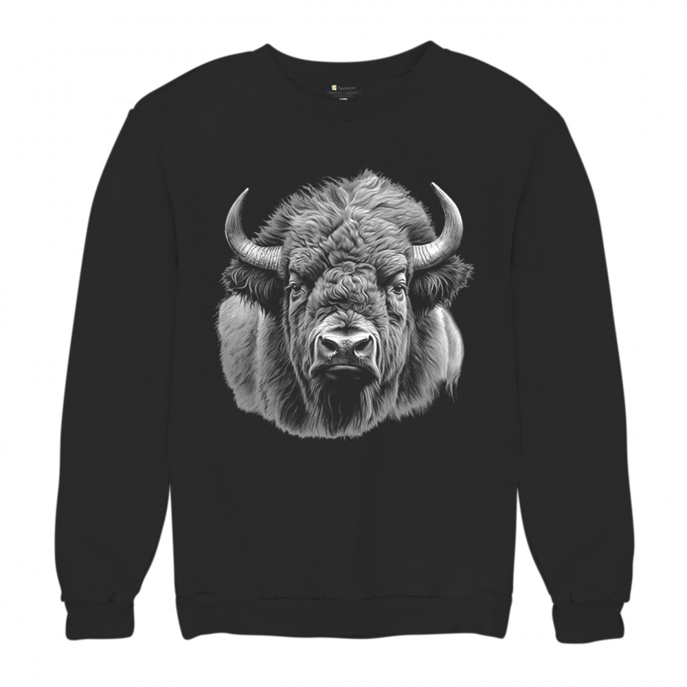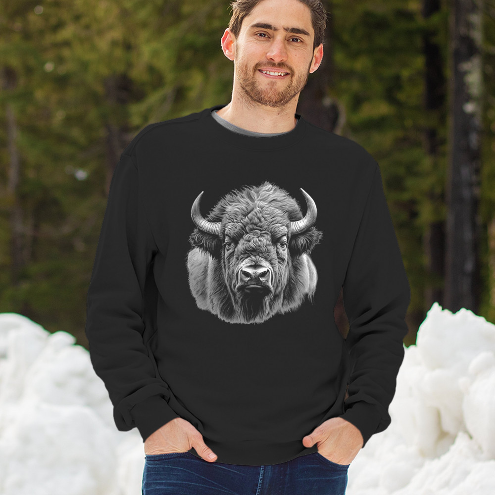 BISON PORTRAIT sweatshirt american buffalo western wildlife nature crewneck black
