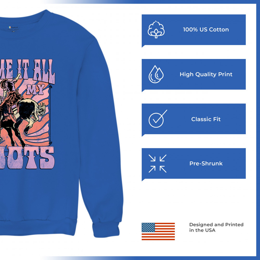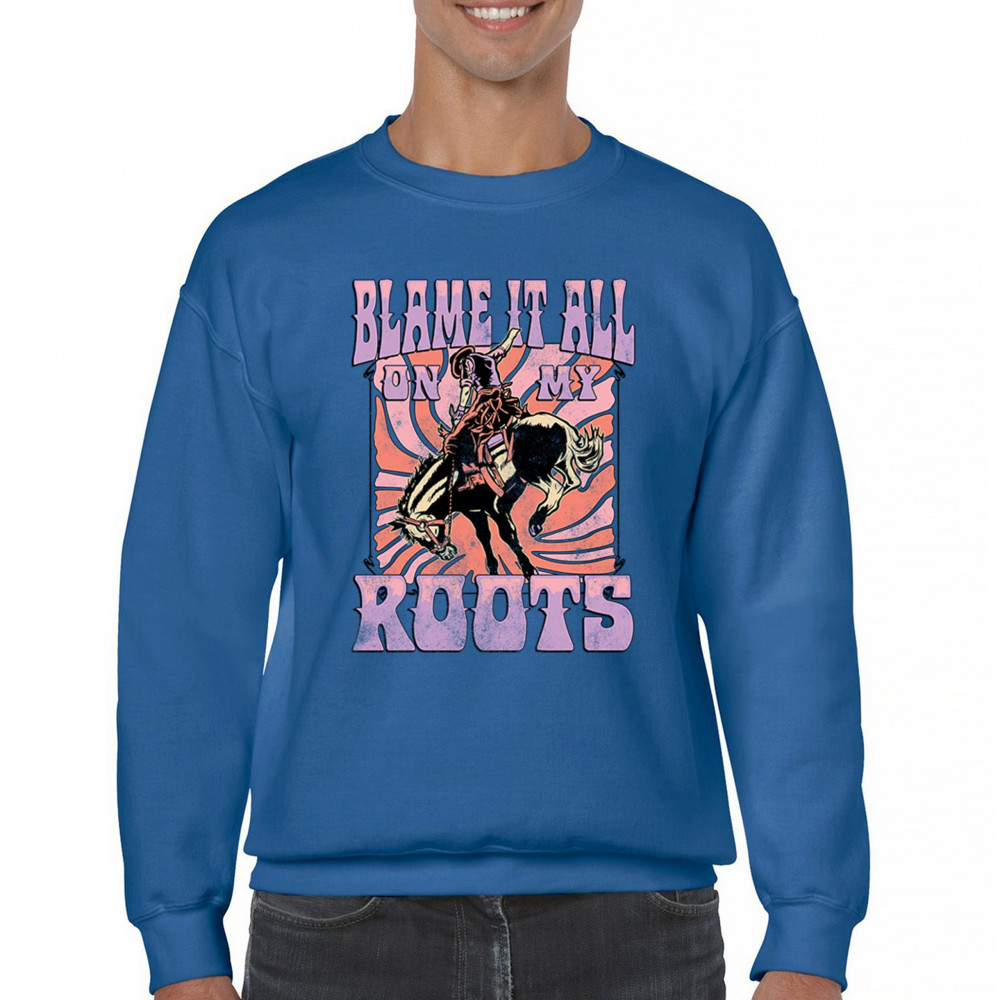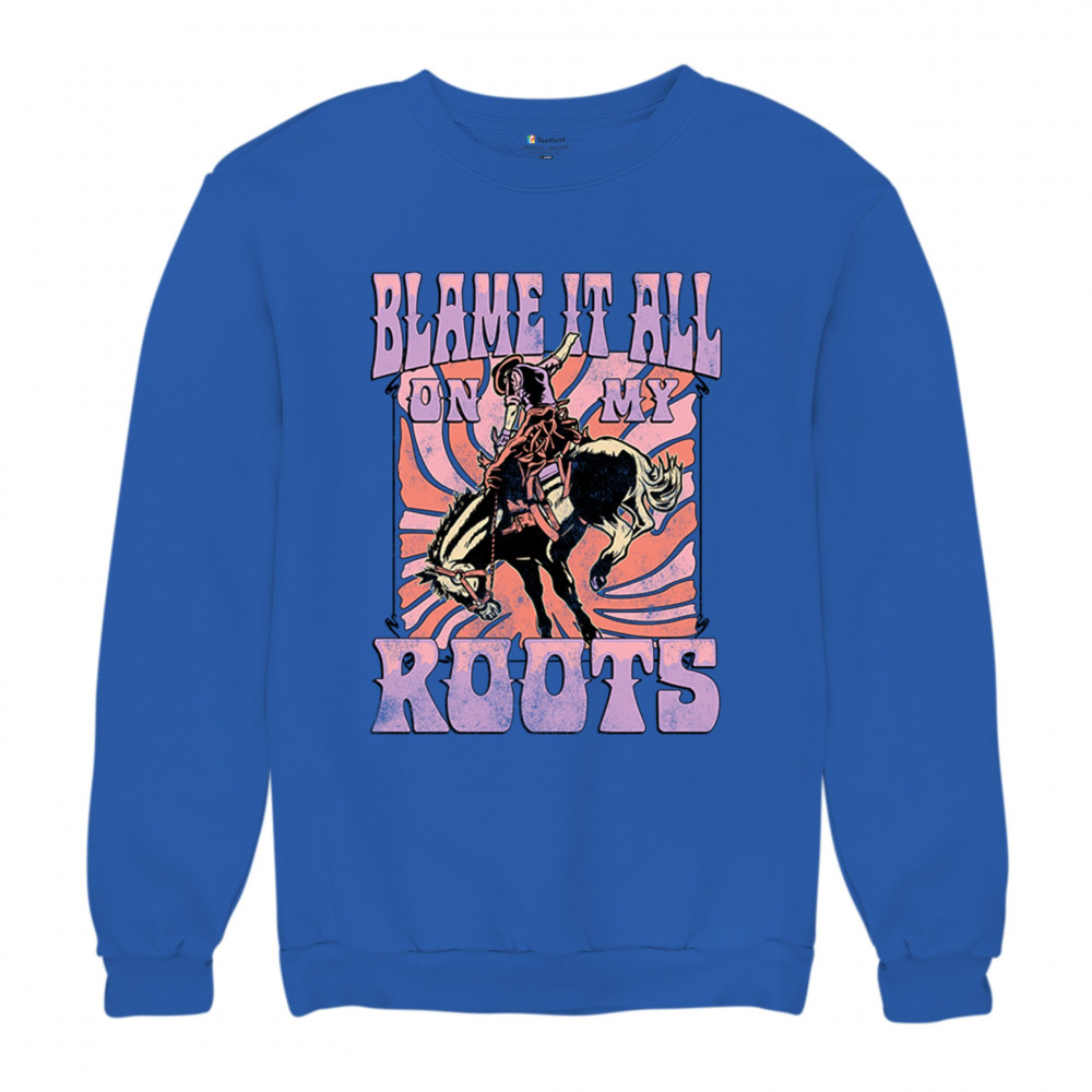 Blame It All On My Roots is vintage country style with rodeo spirit, perfect for small town life, barn dances, and wild country pride.