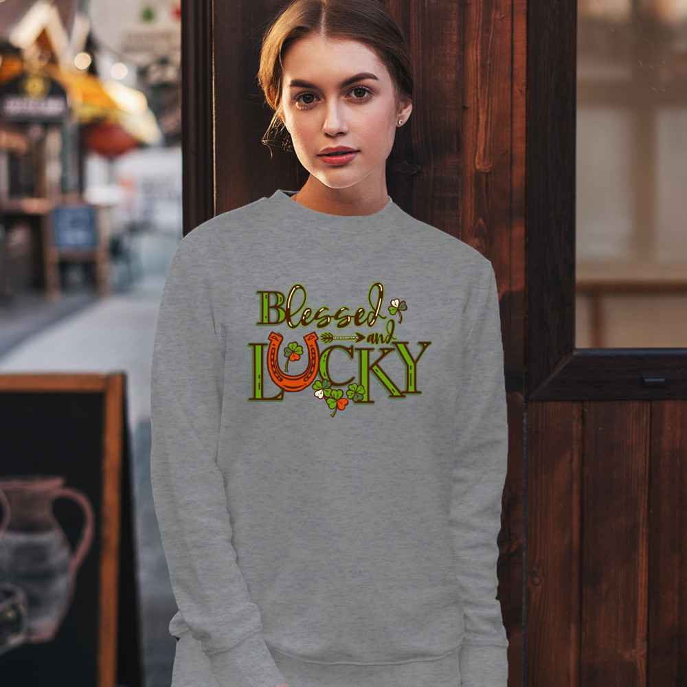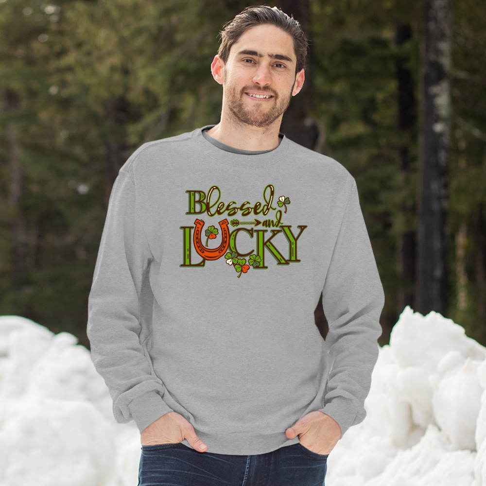 BLESSED AND LUCKY sweatshirt st. patrick's day clover irish malarkey crewneck gray