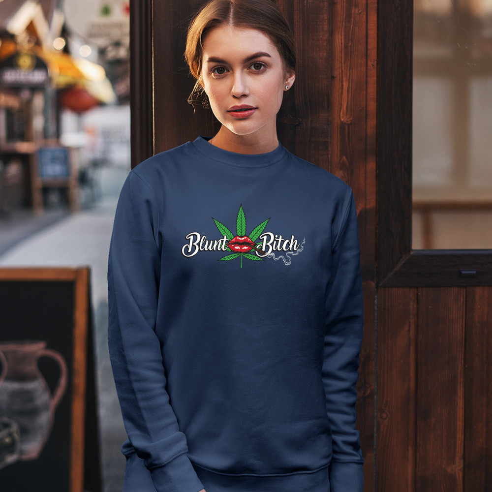 Fierce “Blunt Bitch†design with red lips, blunt, and weed leaf. Bold 420 fashion for confident stoners, cannabis queens, and loud personalities.