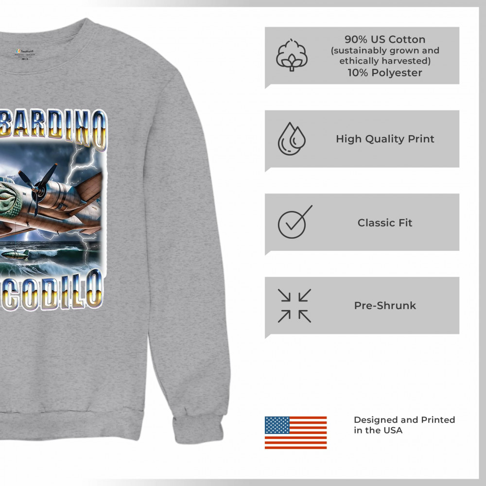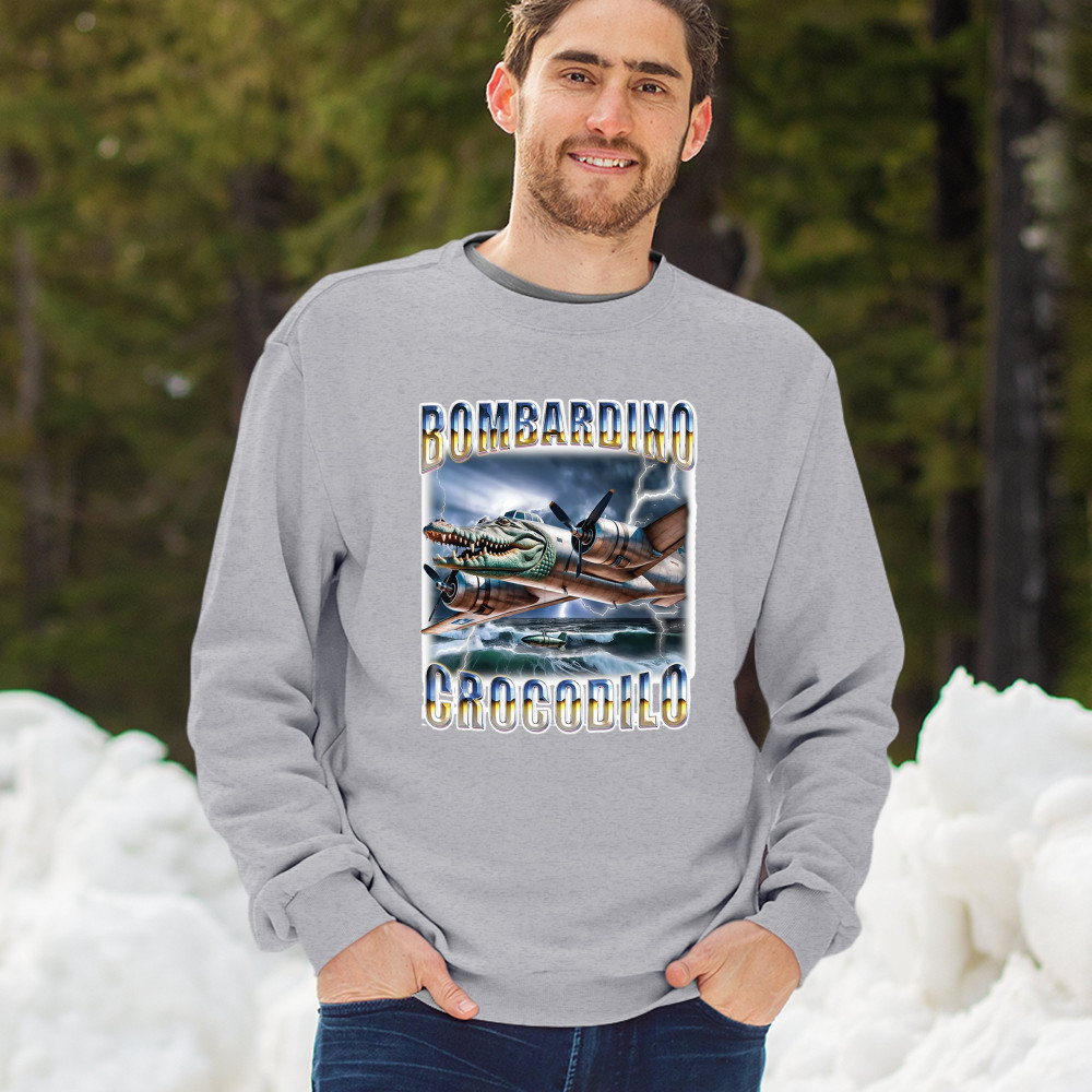 Bombardino Crocodilo is meme fashion with teeth. Featuring a crocodile-faced bomber jet flying through internet chaos, this Italian Brainrot masterpiece blends weirdcore visuals, cursed meme logic, and Gen Z humor. Perfect for fans of surreal fashion, viral absurdity, and TikTok-driven ironic style.