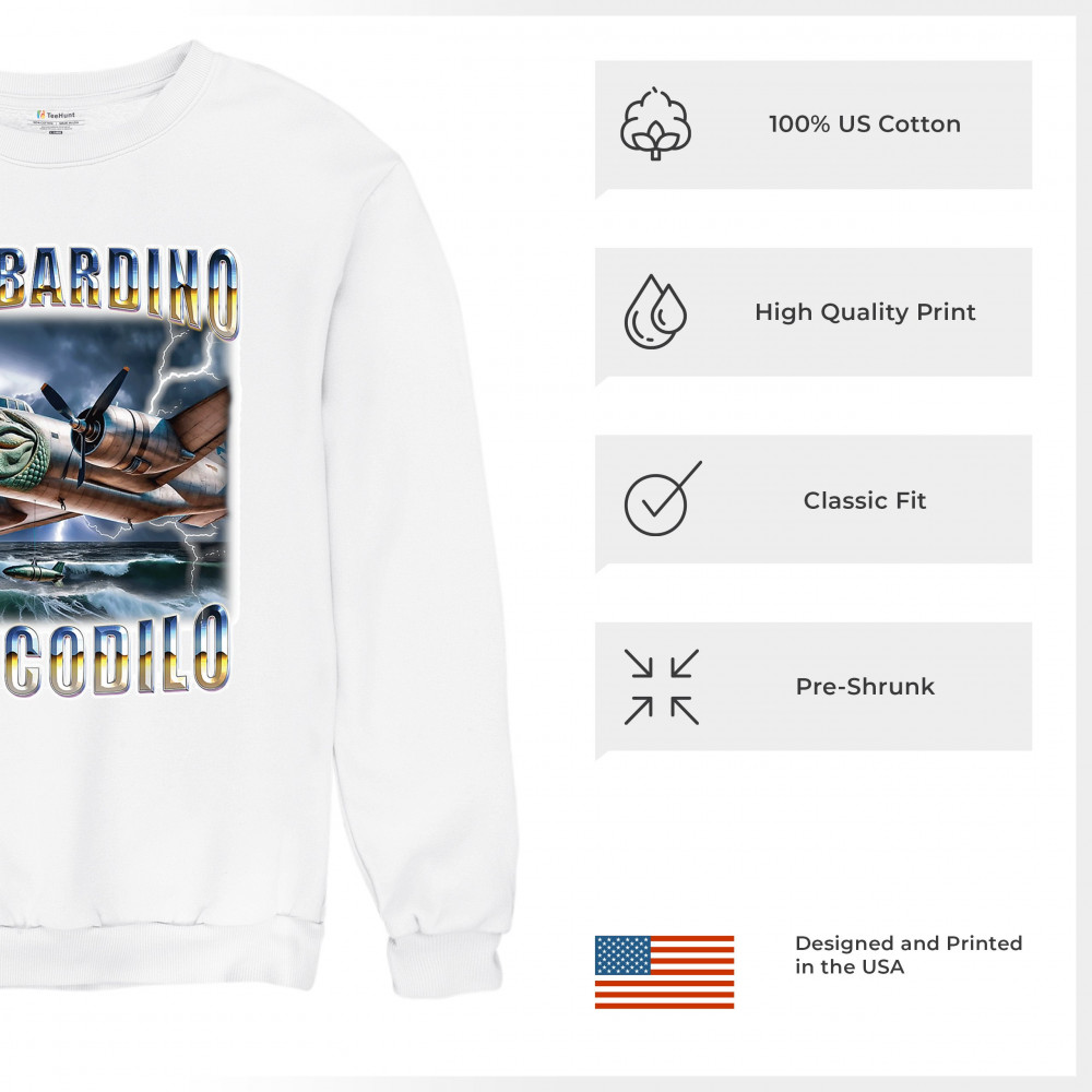 Bombardino Crocodilo is meme fashion with teeth. Featuring a crocodile-faced bomber jet flying through internet chaos, this Italian Brainrot masterpiece blends weirdcore visuals, cursed meme logic, and Gen Z humor. Perfect for fans of surreal fashion, viral absurdity, and TikTok-driven ironic style.