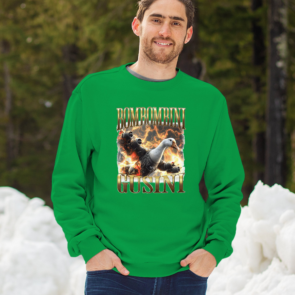 Bombombini Gusini is meme chaos at Mach speed. Featuring a mechanized goose powered by pure Italian Brainrot energy, this design blends cursed-core humor, Gen Z absurdity, ironic fashion, and weirdcore visuals. Perfect for animal meme fans, TikTok-core addicts, and anyone whose humor is completely unhinged.