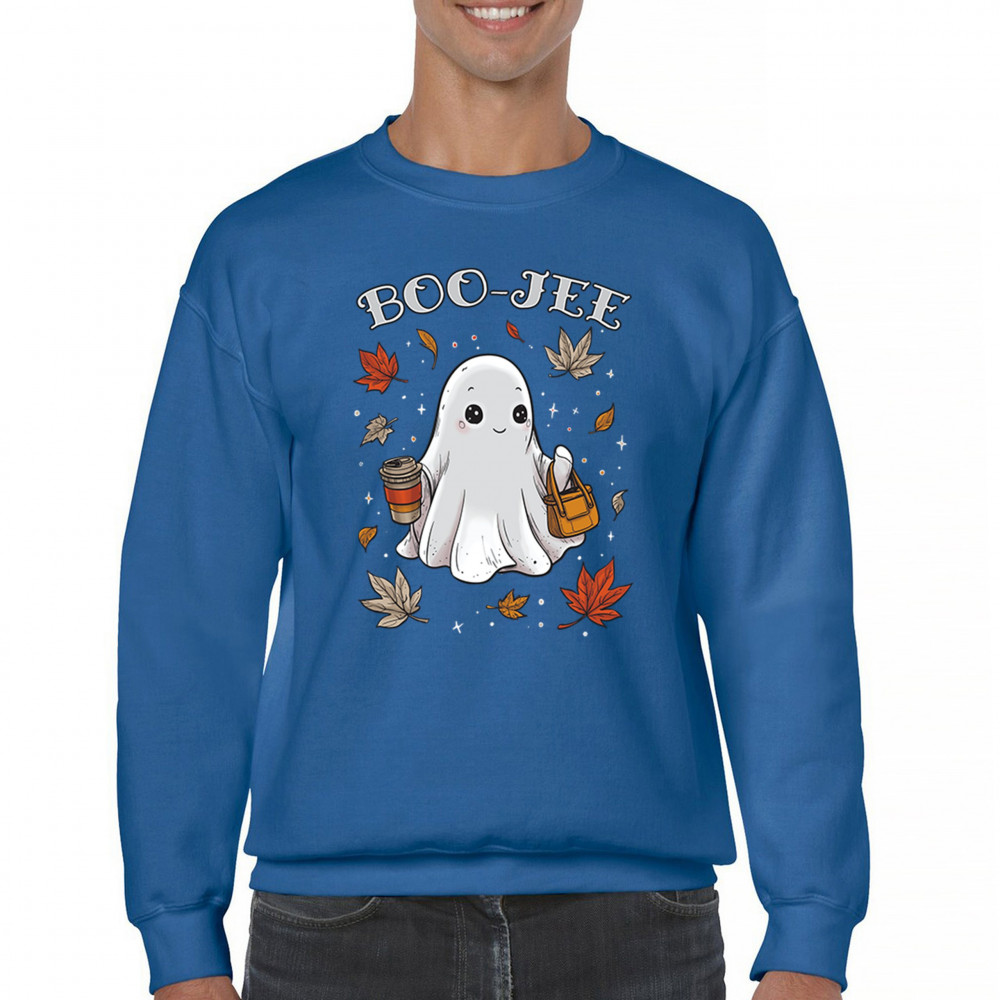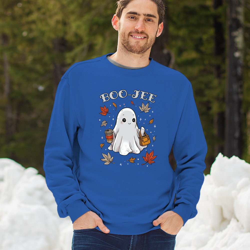 Get in the Halloween spirit with this playful Boo-Jee cute ghost design featuring a funny pumpkin head, cozy candy bucket, and spooky-scary charm. Great for trick or treat fun, haunted house parties, autumn leaves strolls, or sipping coffee on a crisp fall night, this shirt blends festive vibes with seasonal style. Perfect for anyone who loves Halloween fun and cozy fall flair.