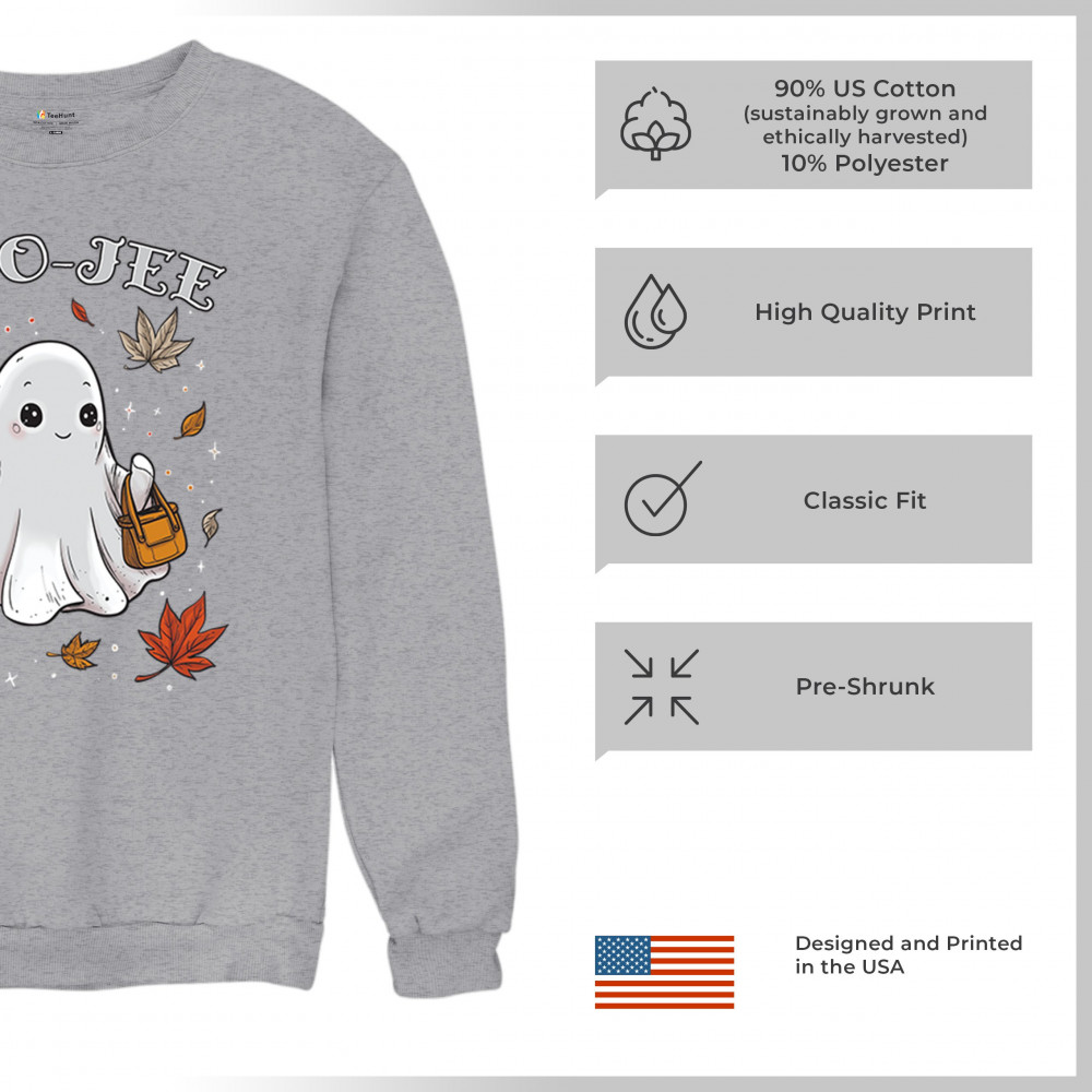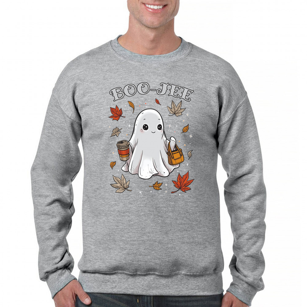 Get in the Halloween spirit with this playful Boo-Jee cute ghost design featuring a funny pumpkin head, cozy candy bucket, and spooky-scary charm. Great for trick or treat fun, haunted house parties, autumn leaves strolls, or sipping coffee on a crisp fall night, this shirt blends festive vibes with seasonal style. Perfect for anyone who loves Halloween fun and cozy fall flair.