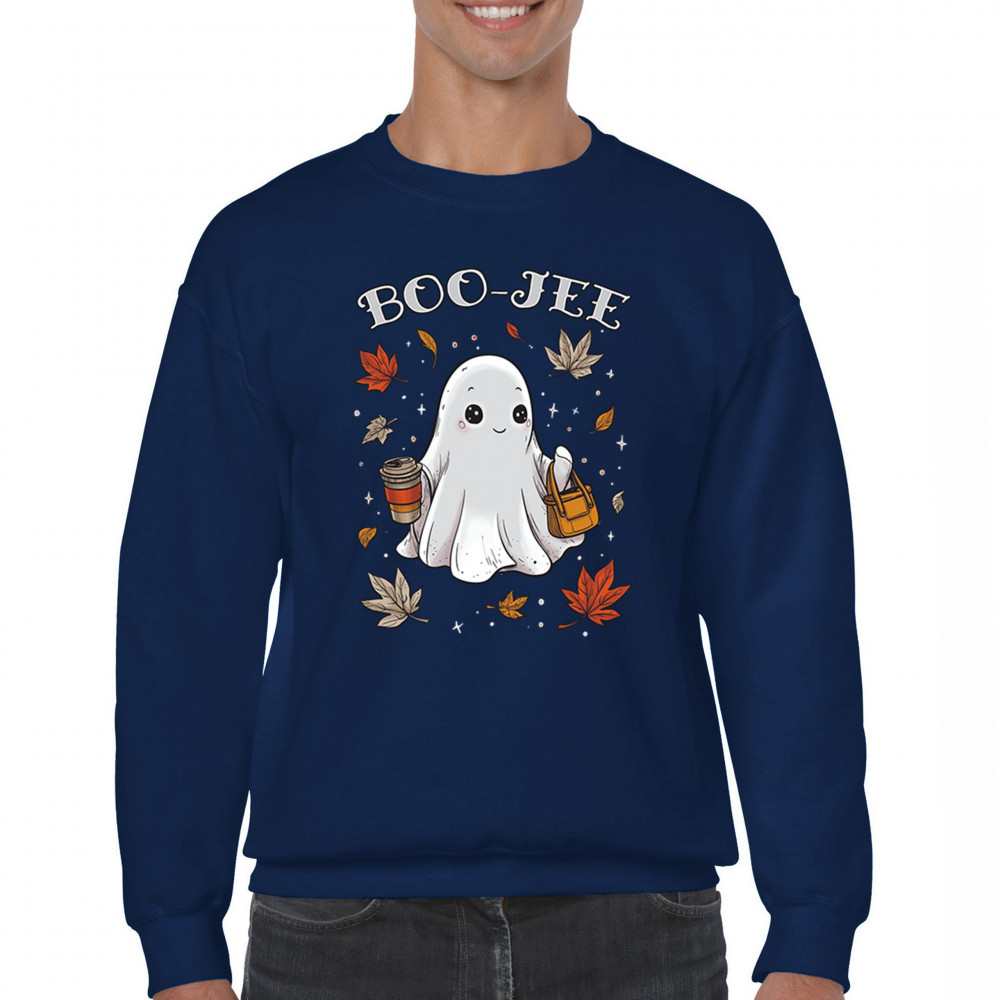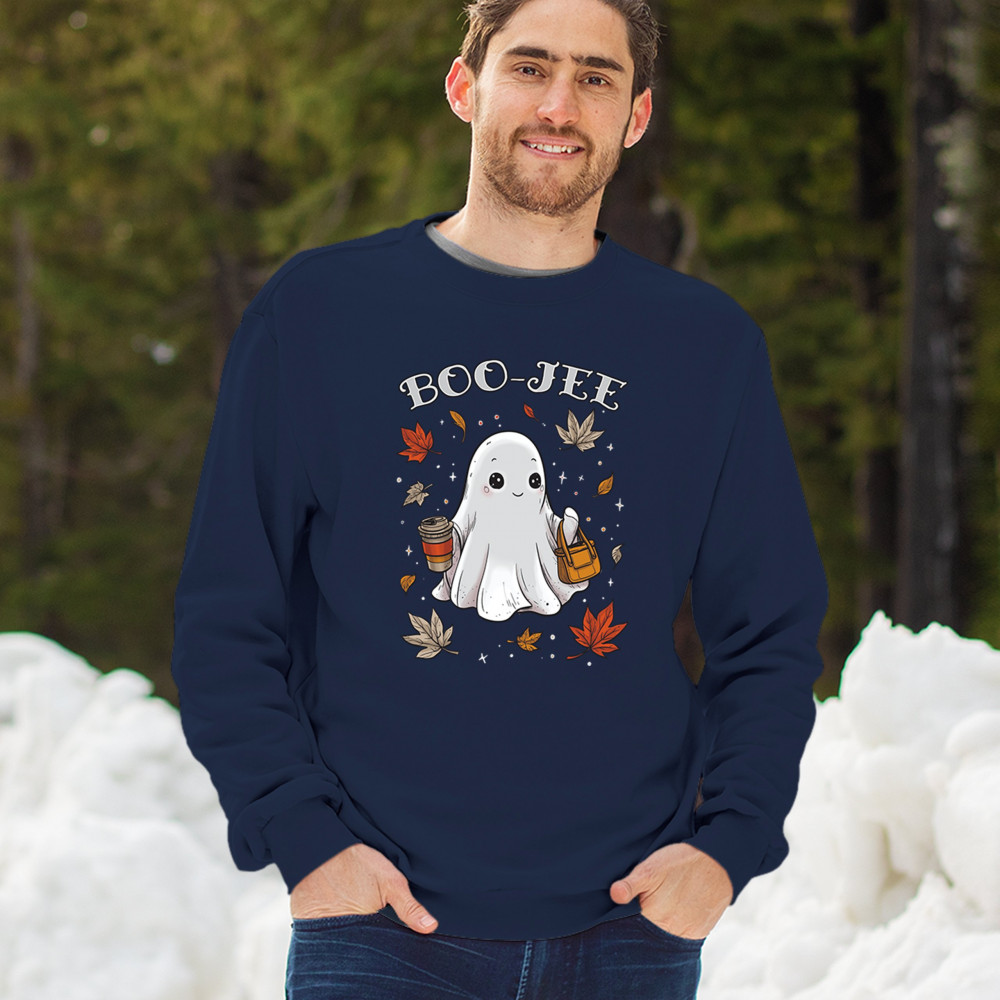 Get in the Halloween spirit with this playful Boo-Jee cute ghost design featuring a funny pumpkin head, cozy candy bucket, and spooky-scary charm. Great for trick or treat fun, haunted house parties, autumn leaves strolls, or sipping coffee on a crisp fall night, this shirt blends festive vibes with seasonal style. Perfect for anyone who loves Halloween fun and cozy fall flair.