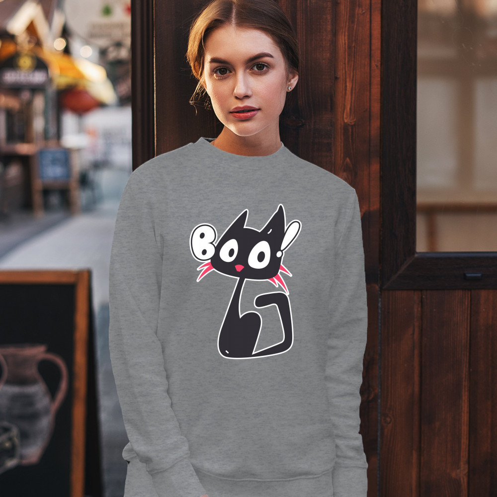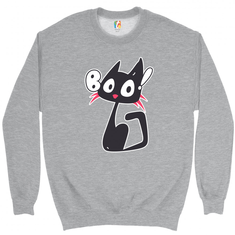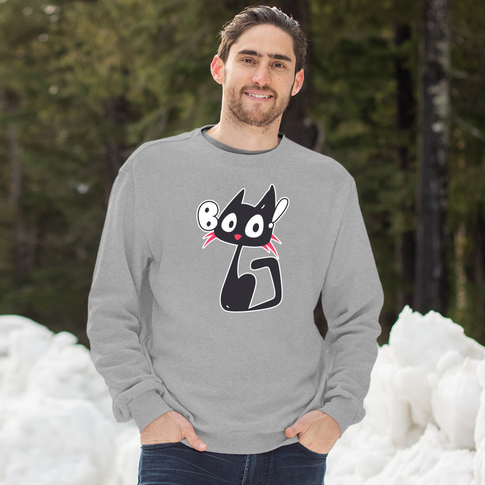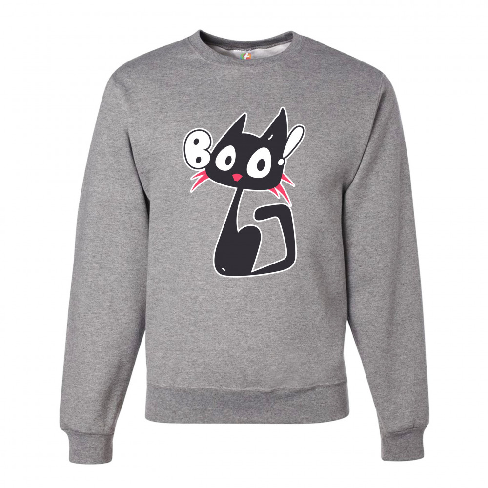BOO KITTEN sweatshirt happy halloween trick-or-treating funny cat crewneck gray