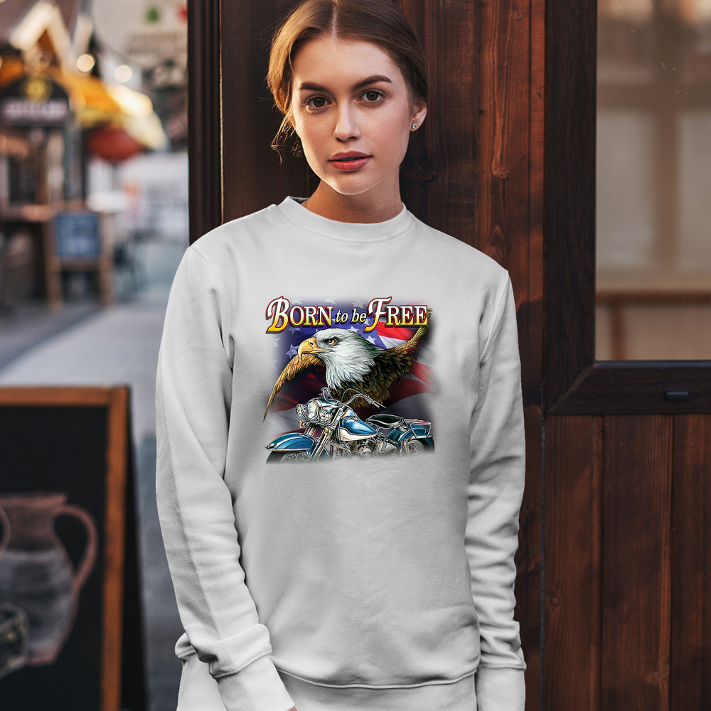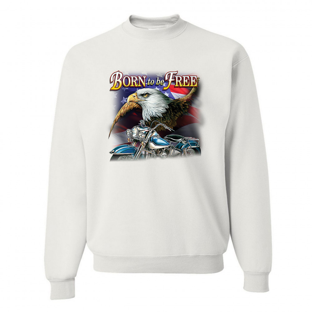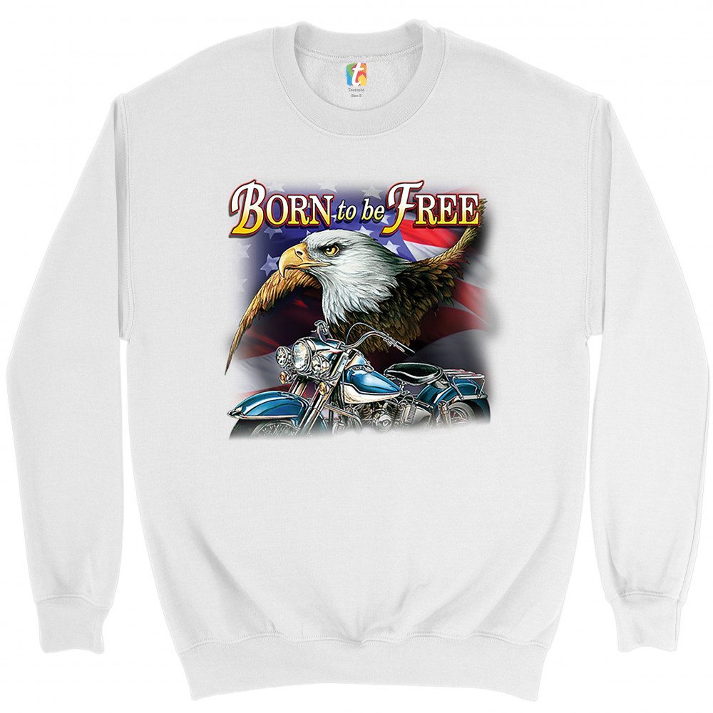 BORN TO BE FREE sweatshirt american bald eagle chopper biker patriotic crewneck white