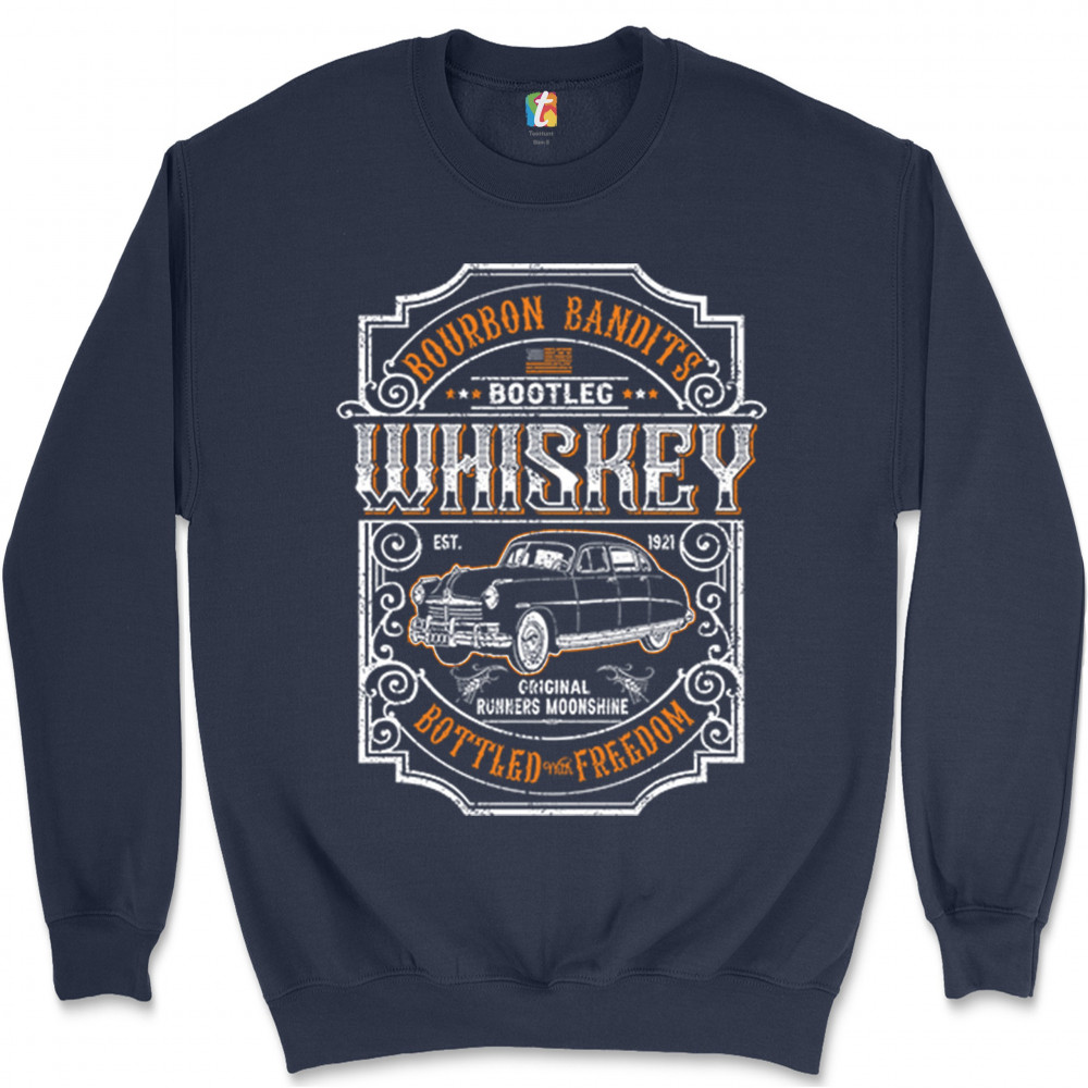 BOURBON BANDIT'S BOOTLEG WHISKEY sweatshirt original runners moonshine crewneck navy blue