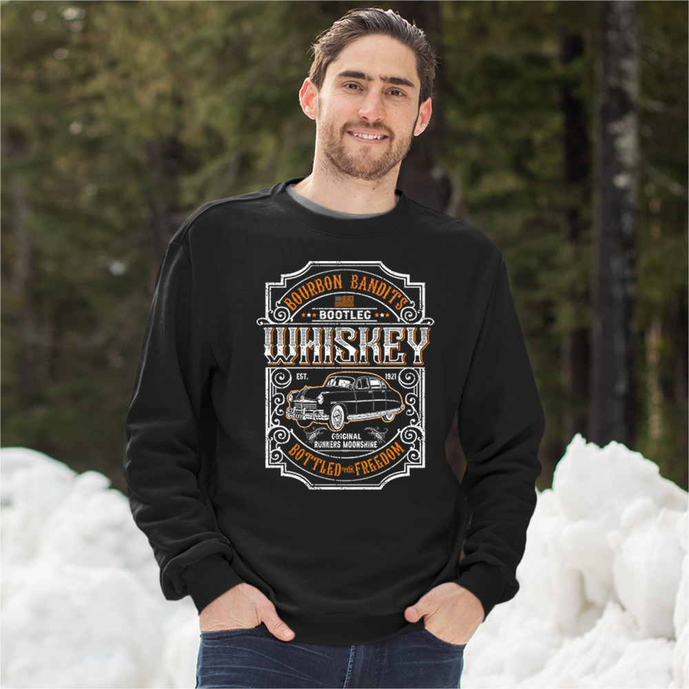 BOURBON BANDIT'S BOOTLEG WHISKEY sweatshirt original runners moonshine crewneck black