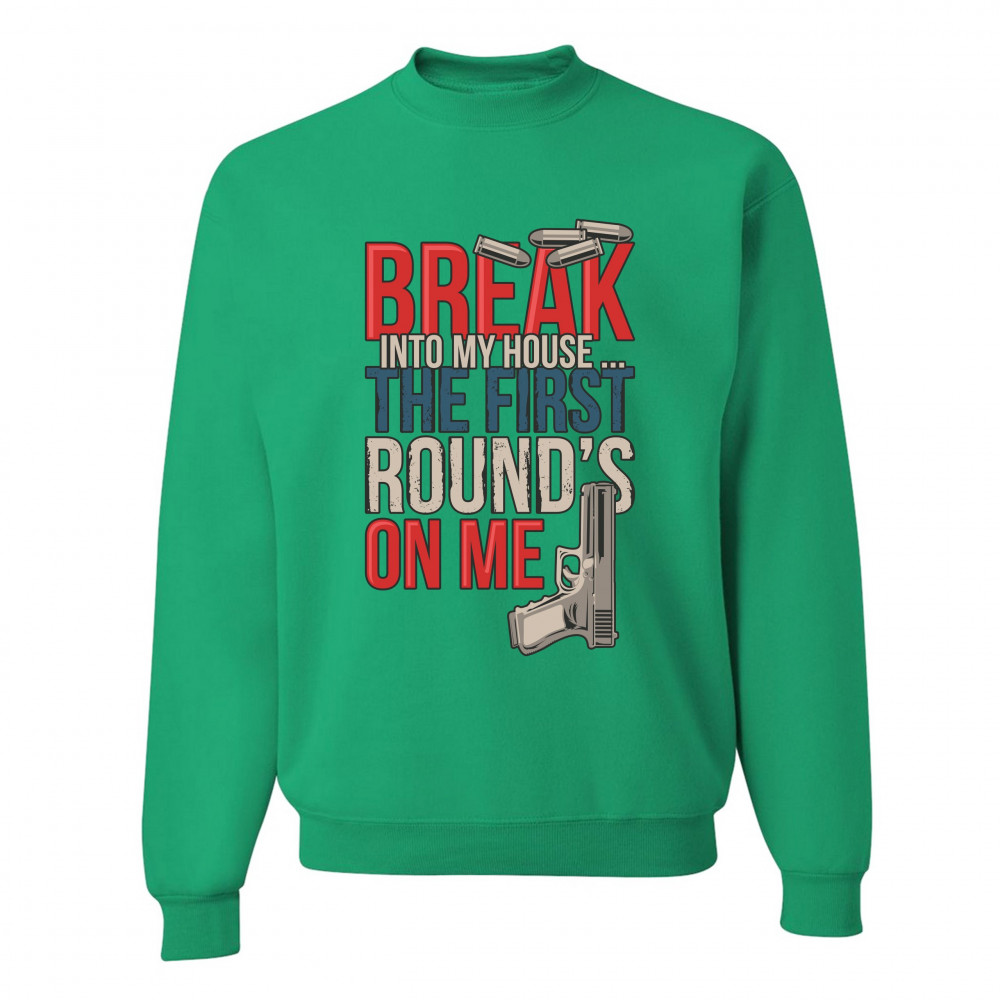 BREAK INTO MY HOUSE.. THE FIRST ROUND'S ON ME sweatshirt 2nd amendment crewneck green
