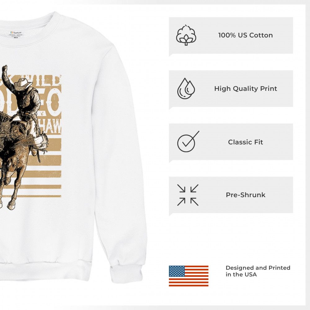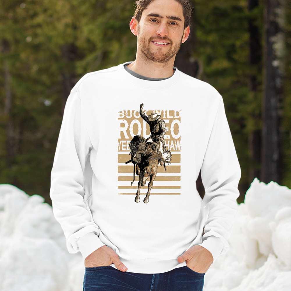 Rodeo bronc rider design with cowboy grit. Western graphic for fans of ranch life, bucking broncos, and rodeo events.