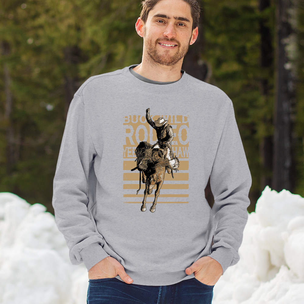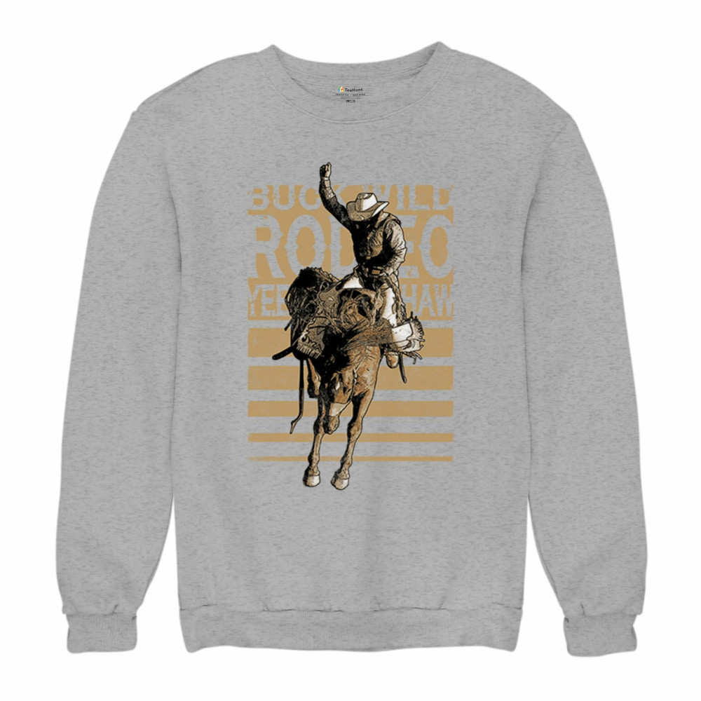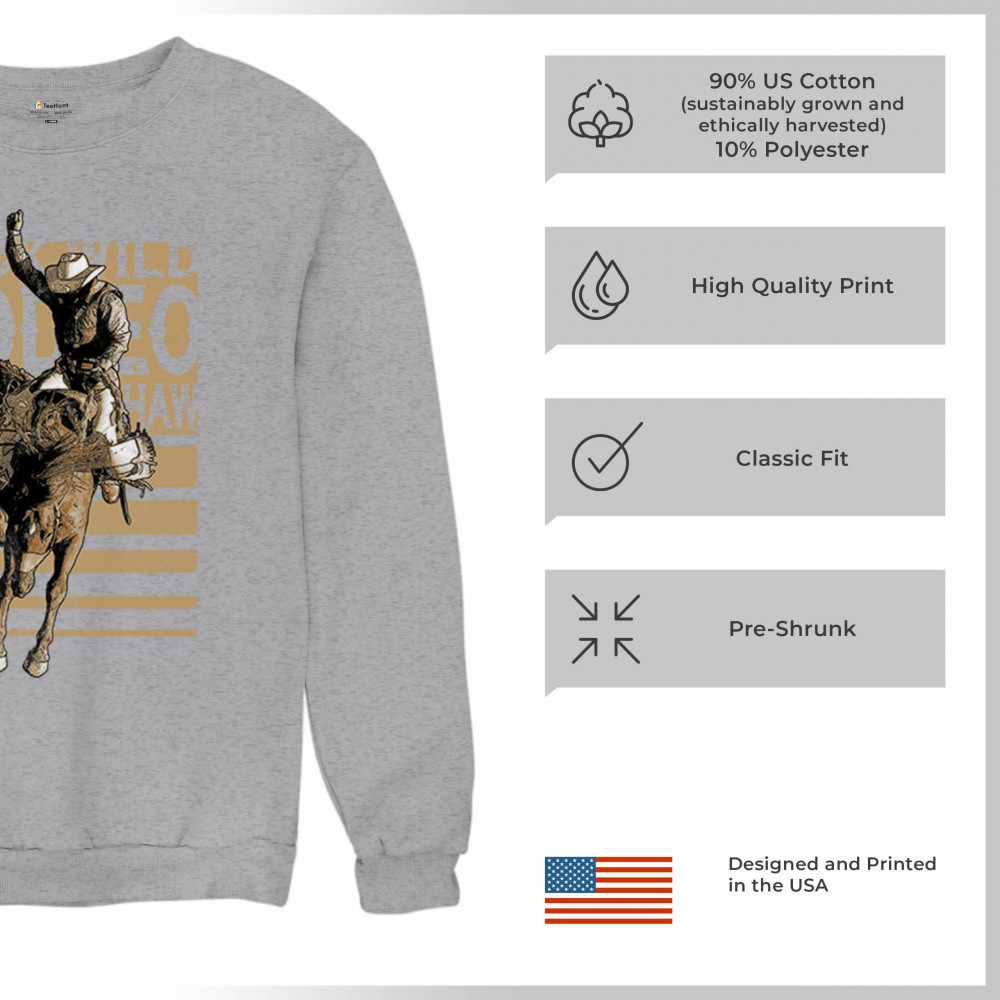 Rodeo bronc rider design with cowboy grit. Western graphic for fans of ranch life, bucking broncos, and rodeo events.