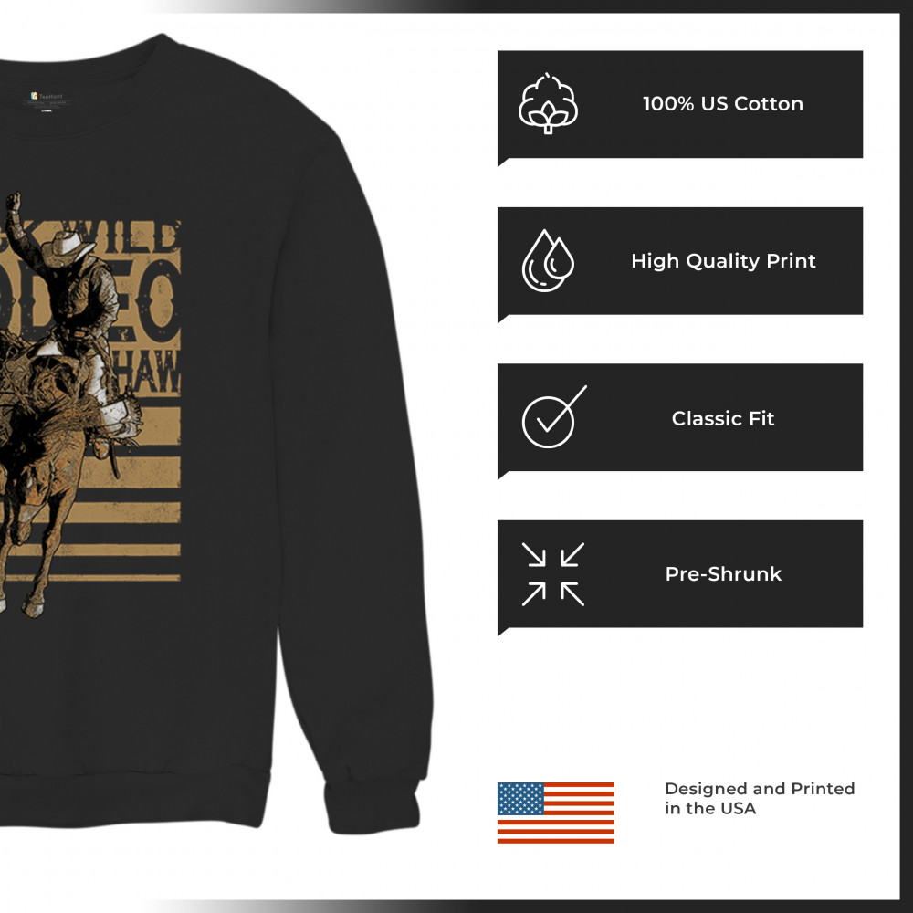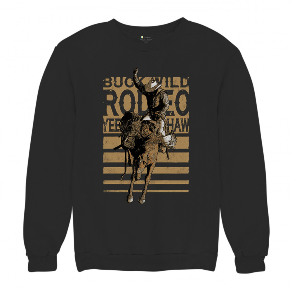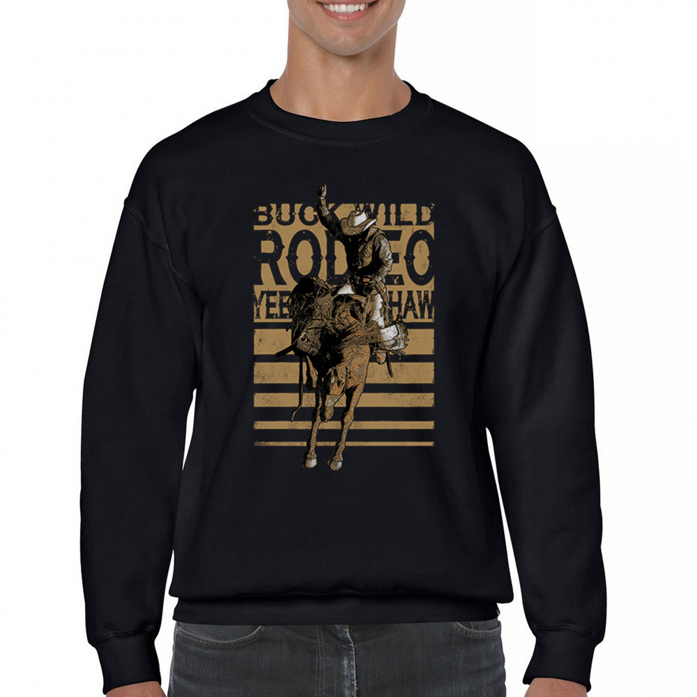 BRONC RIDING COWBOY RODEO CHAMPION sweatshirt western horseback rider crewneck black