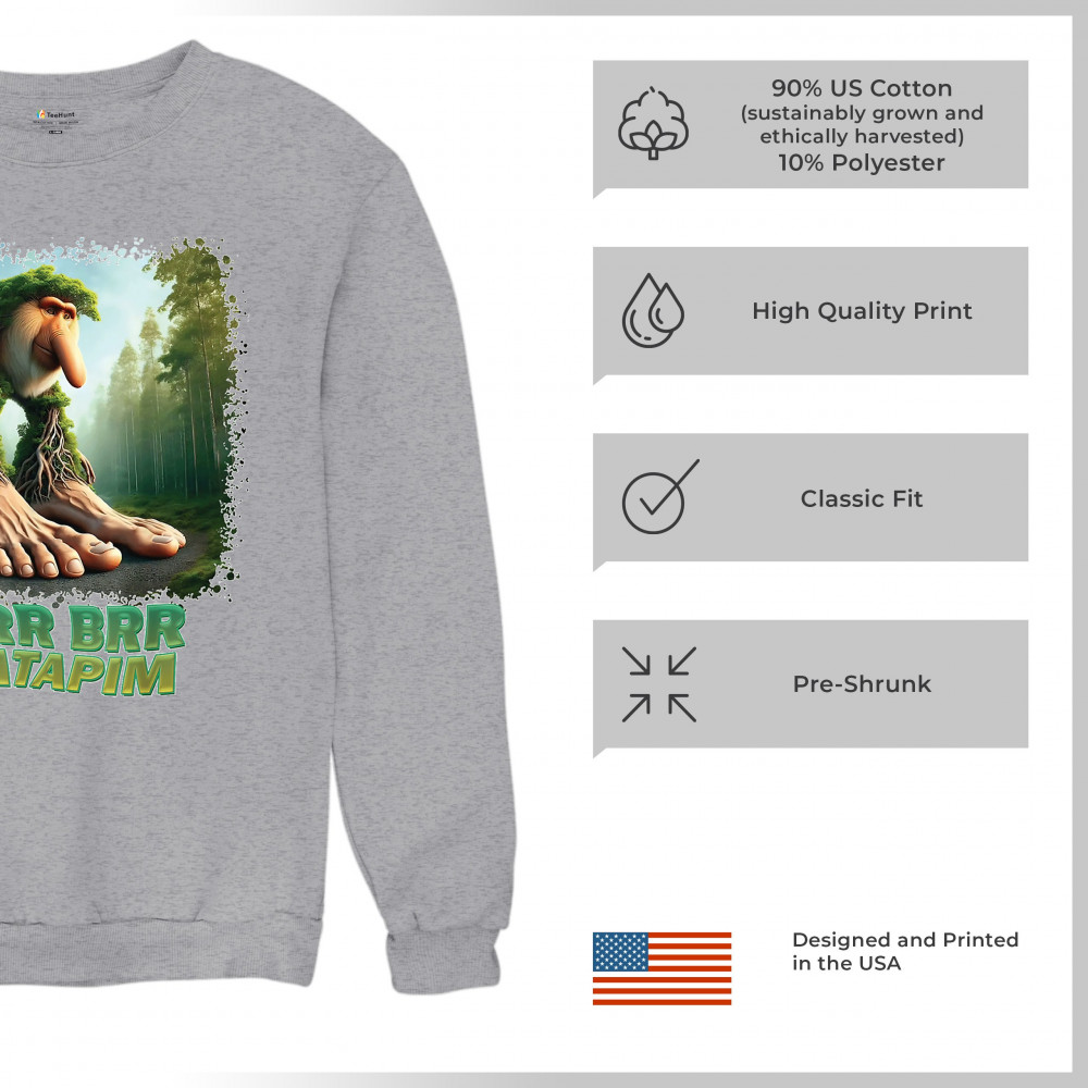 BRR BRR PATAPIM crewneck sweatshirt funny italian brainrot gen z alpha meme gray