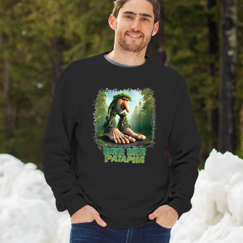 Brr Brr Patapim is forest-core gone full brainrot. Featuring a massive-footed tree-beast with cryptid energy, this design blends cursed meme culture, TikTok humor, weirdcore visuals, and surreal Gen Z fashion. It’s ideal for fans of absurd monster mashups and internet chaos fits.