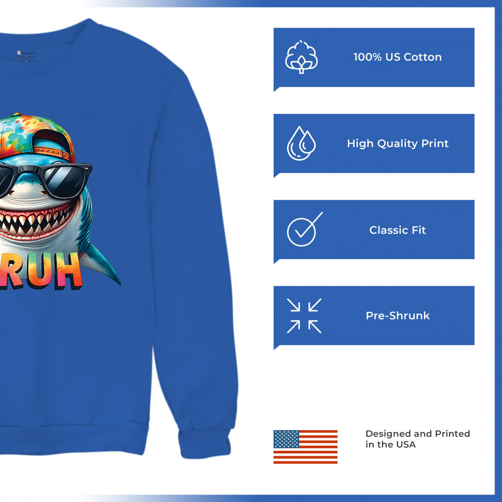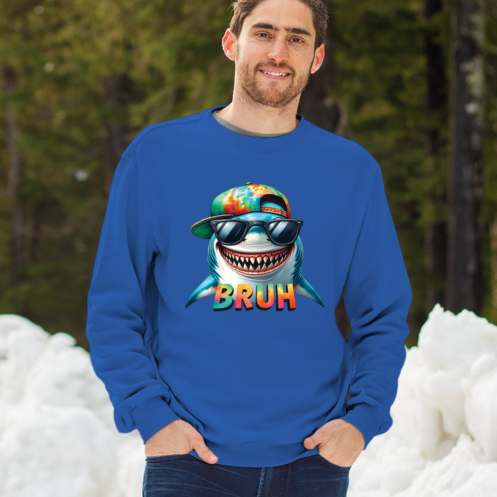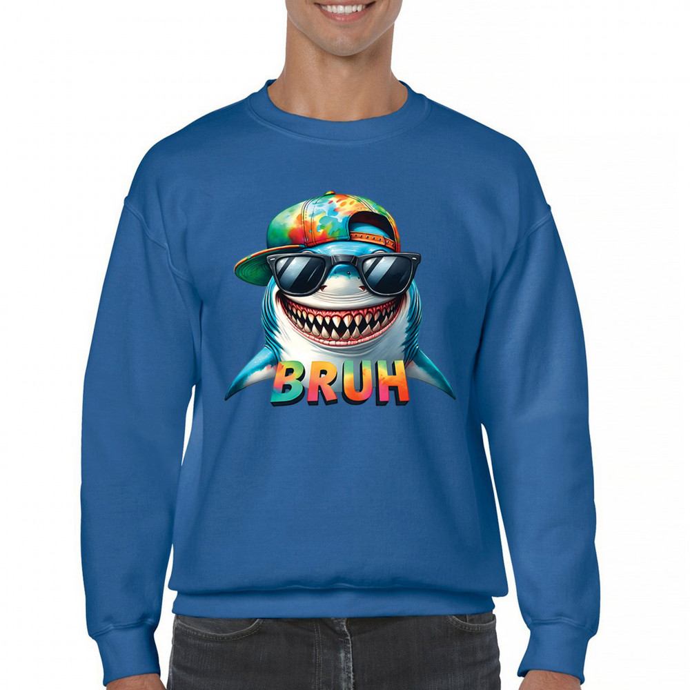 Ride the wave of meme culture with this Bruh Shark Gen Z design, featuring goofy cartoon shark humor, Sigma Aura vibes, and Italian Brainrot energy. Perfect for fans of bruh meme shirts, summer beach vibes, ocean party style, and funny animal meme culture. A must-have for anyone who loves Skibidi Sigma Rizz humor.