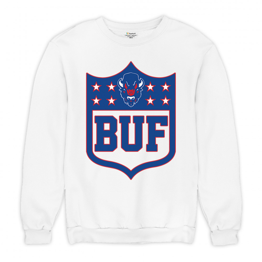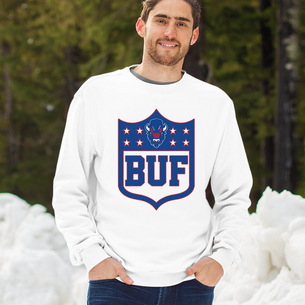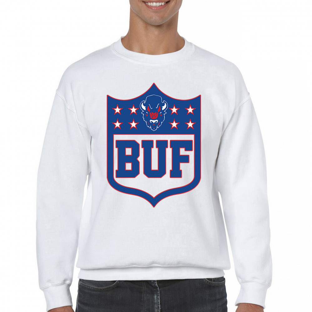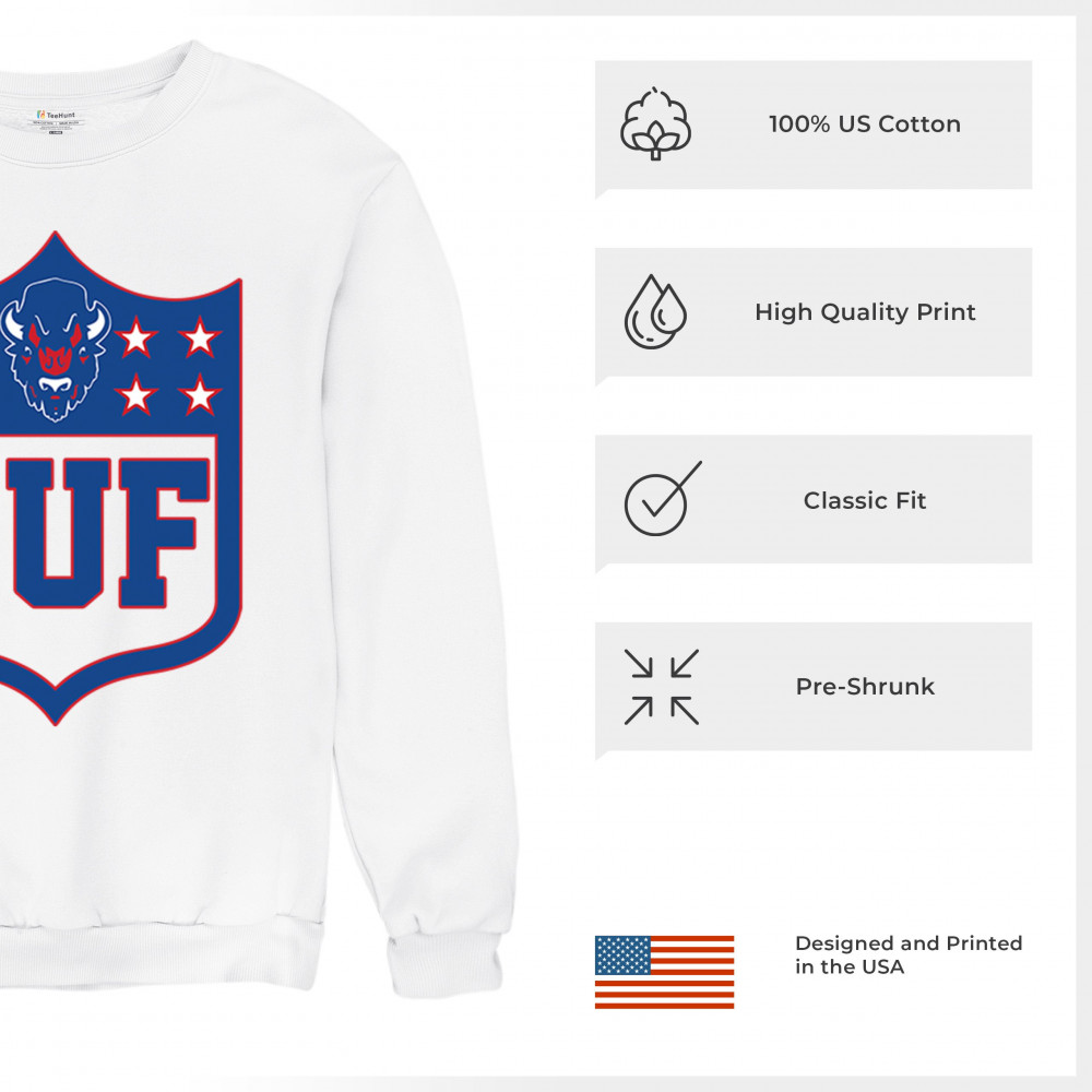Bold Buffalo bison shield design for game day gear, tailgating, Sunday football, and championship pride in The Queen City.