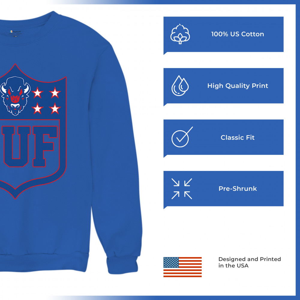 Bold Buffalo bison shield design for game day gear, tailgating, Sunday football, and championship pride in The Queen City.