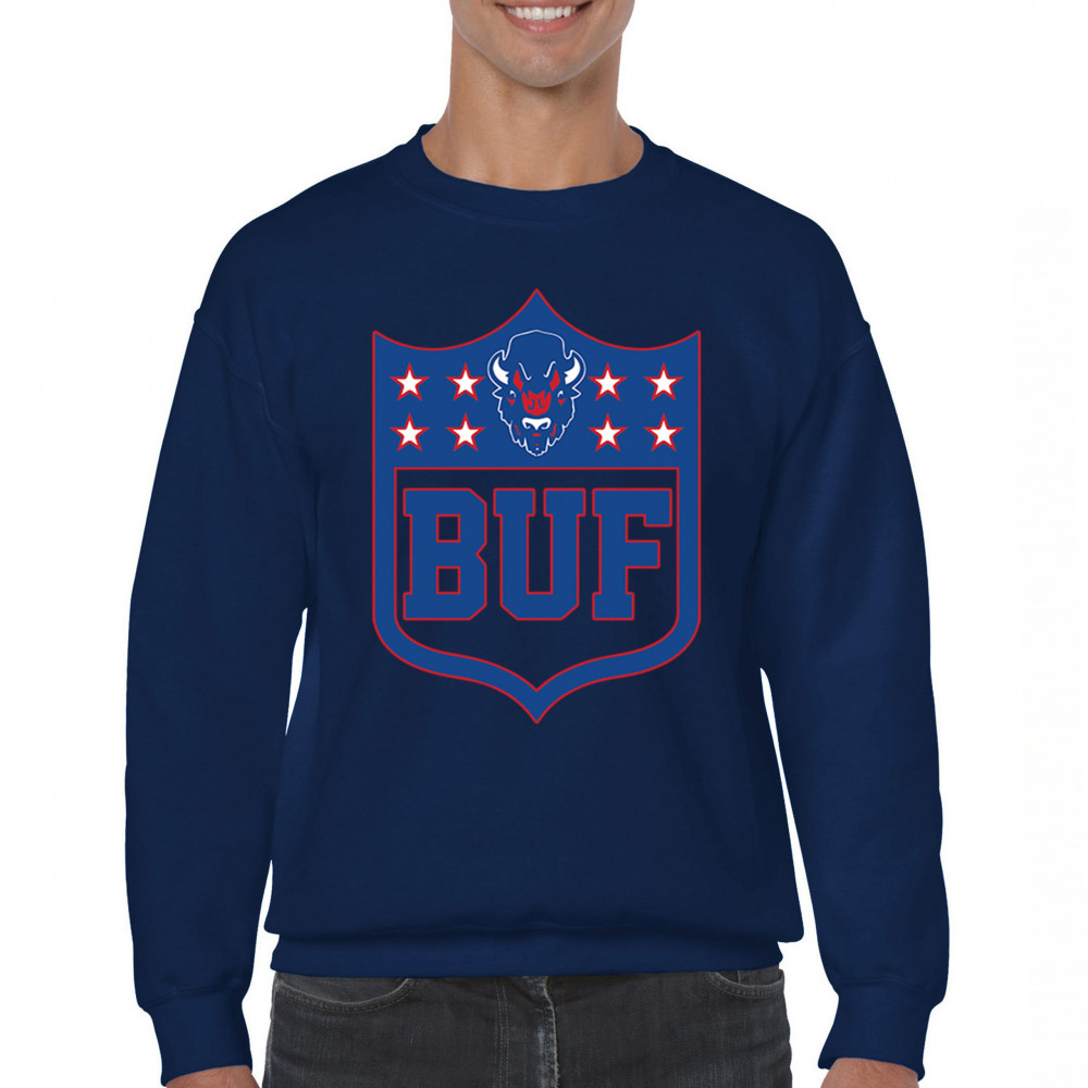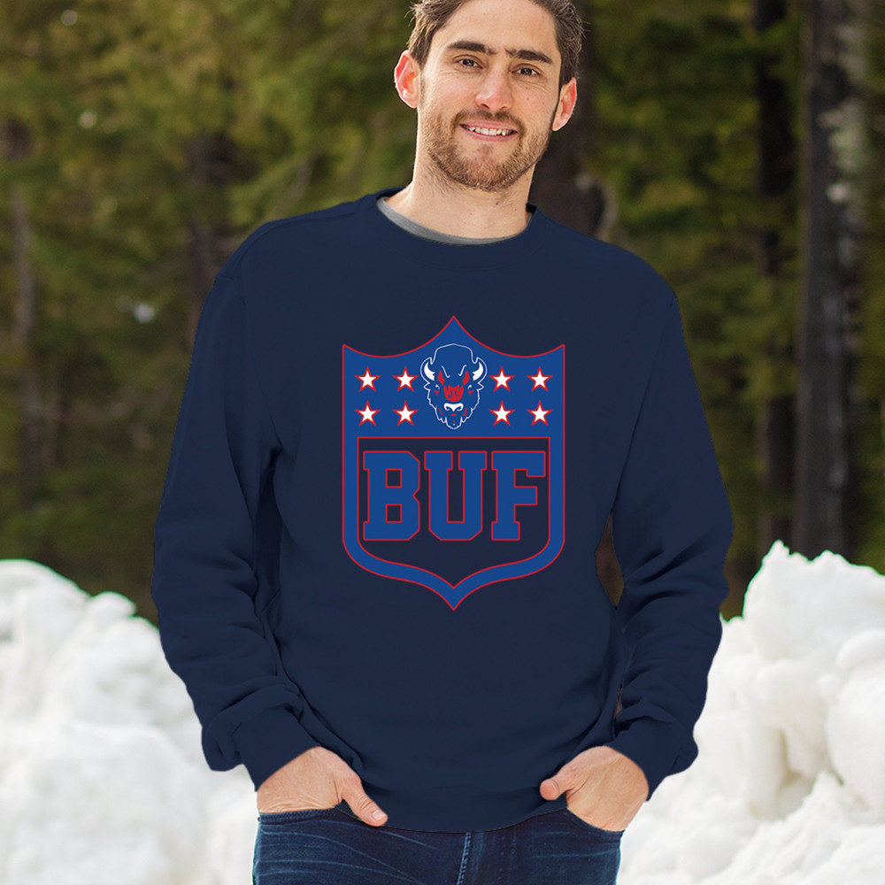 Bold Buffalo bison shield design for game day gear, tailgating, Sunday football, and championship pride in The Queen City.
