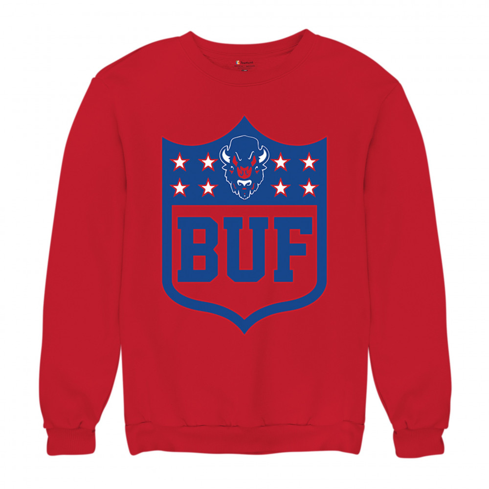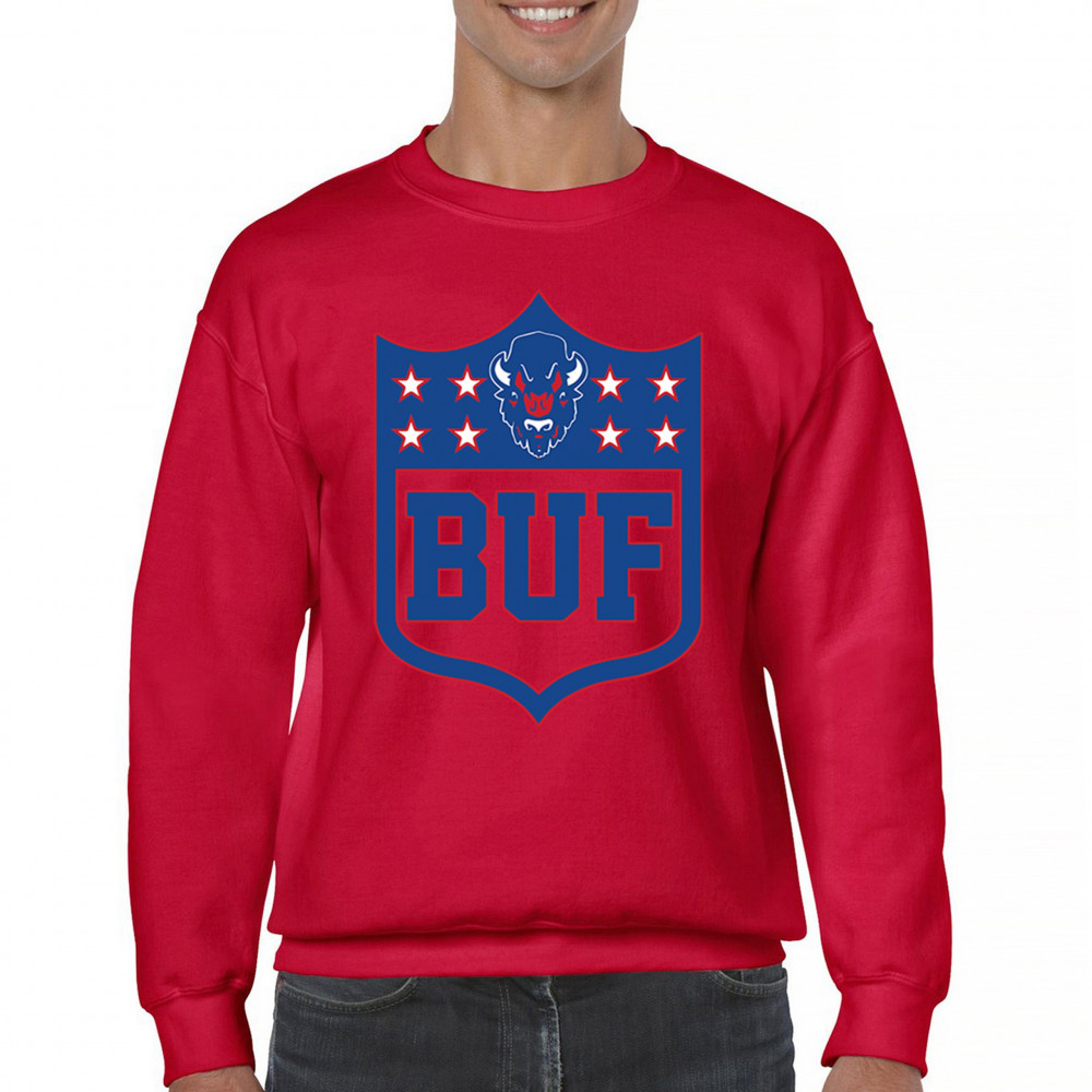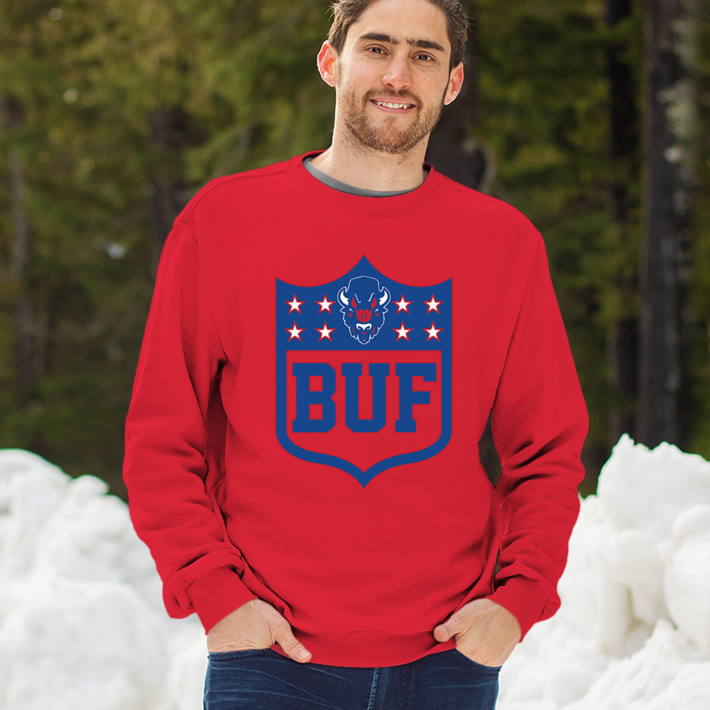 Bold Buffalo bison shield design for game day gear, tailgating, Sunday football, and championship pride in The Queen City.
