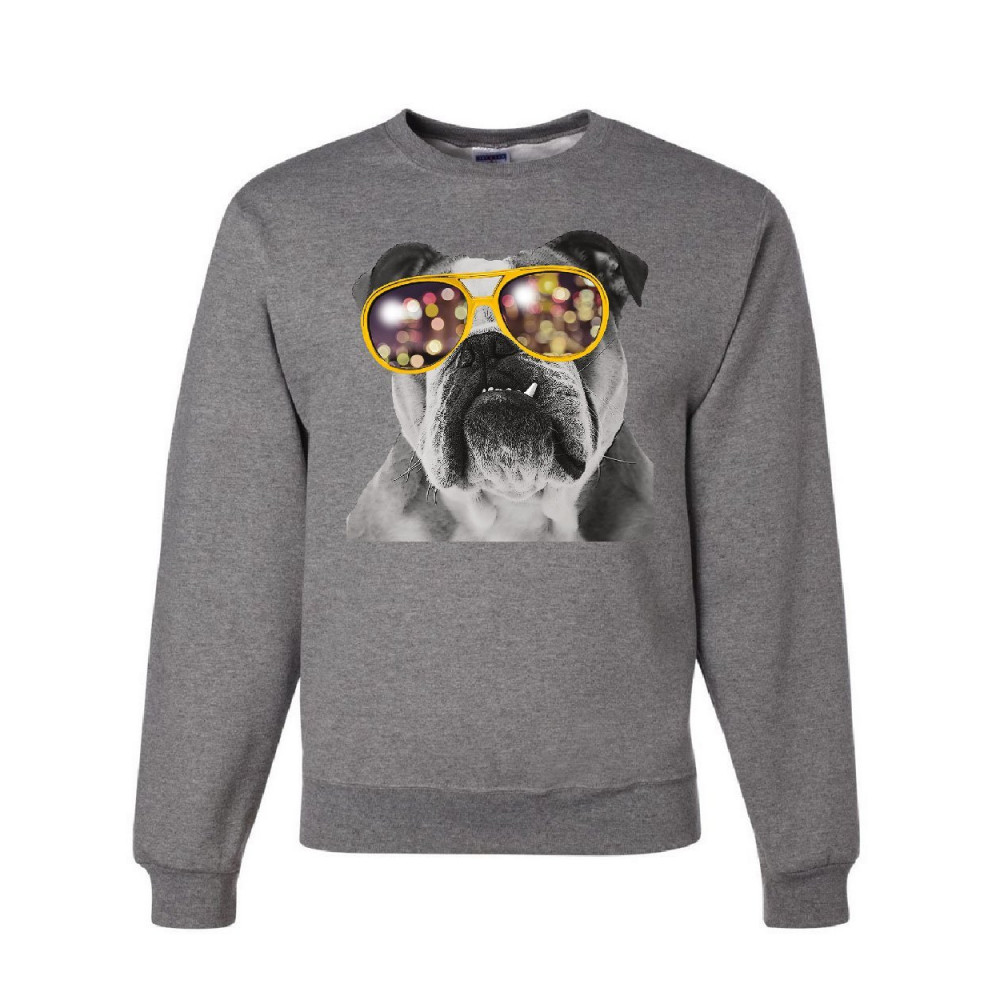 BULLDOG WEARING GLASSES sweatshirt cute dog swag pet lovers urban sweater gray