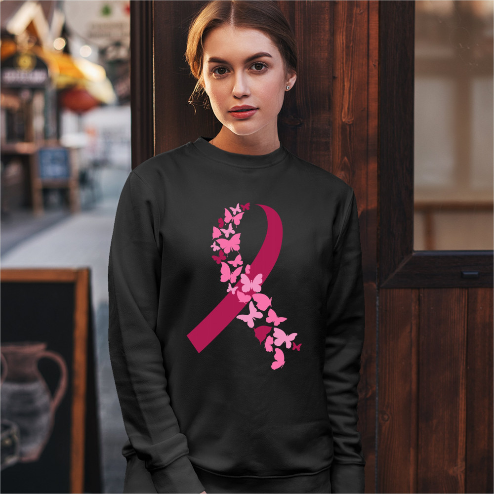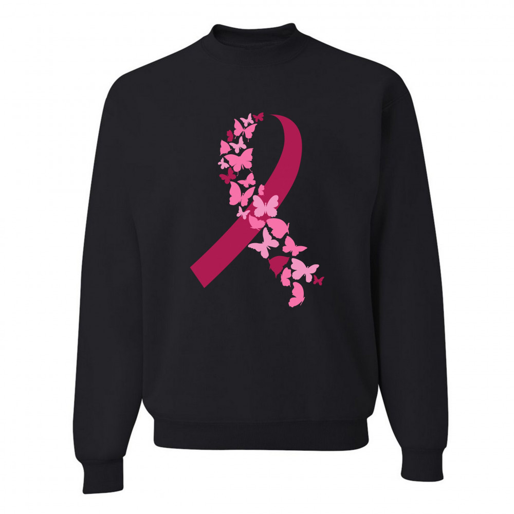 BUTTERFLIES PINK RIBBON sweatshirt breast cancer awareness hope crewneck black